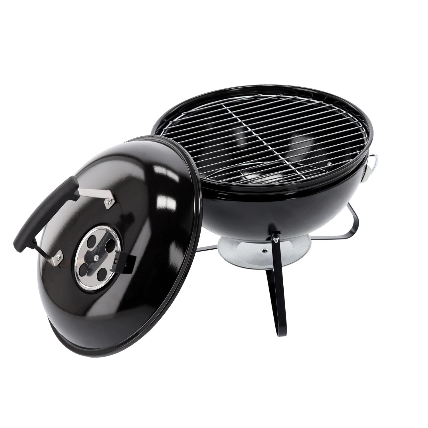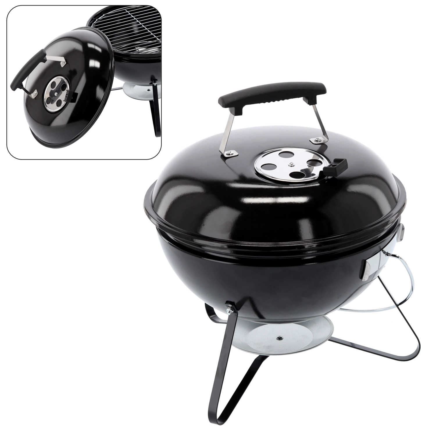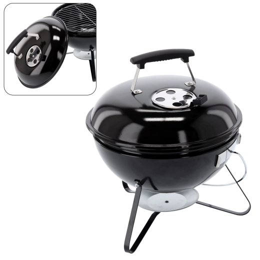 Den kompakte kuglegrill til trækul med en diameter på 37 cm er ideel til have, altan og picnic. Den tilbyder en let og bærbar konstruktion, et emaljeret låg for bedre varmcirkulation og et stabilt trefodsstel for sikker grillning hvor som helst.