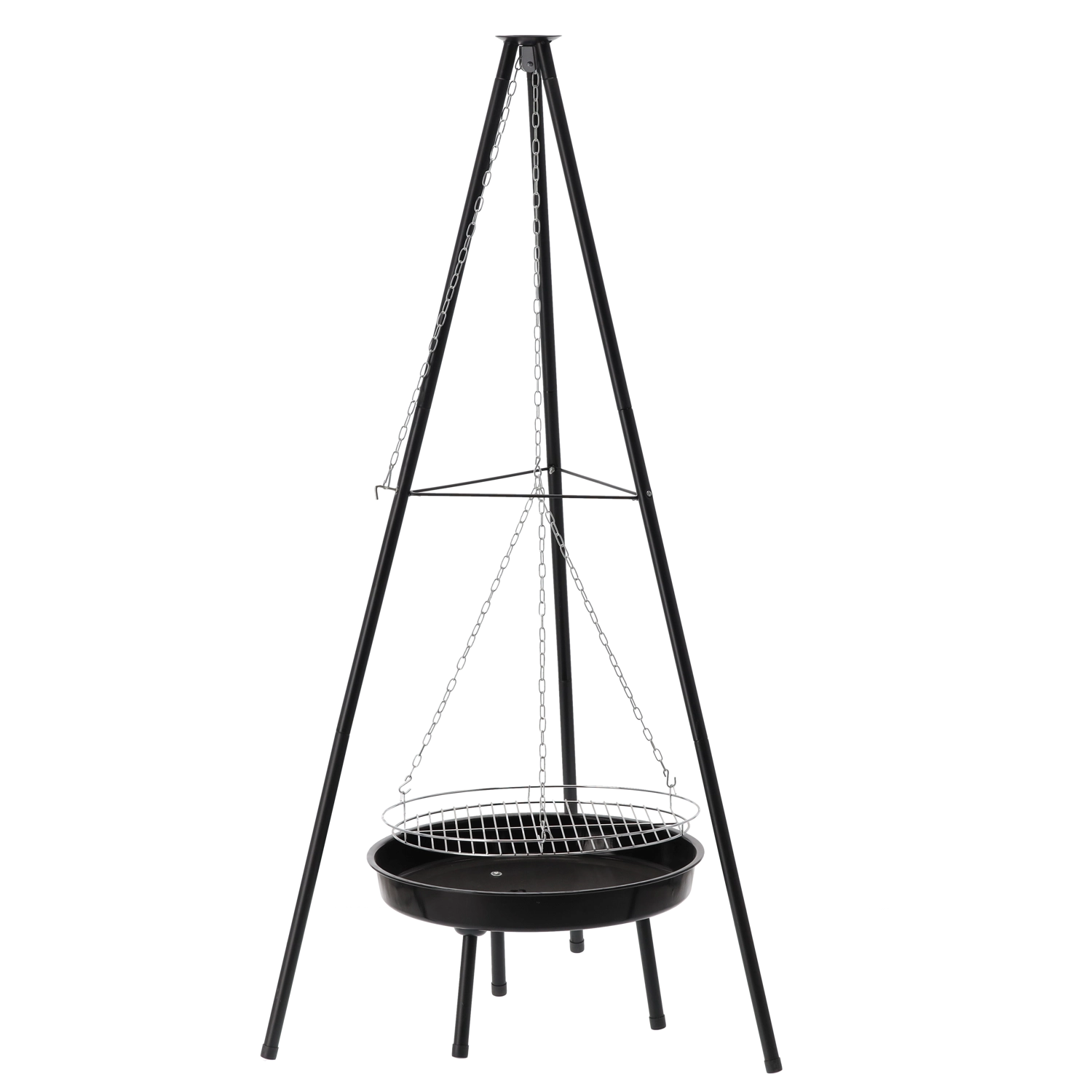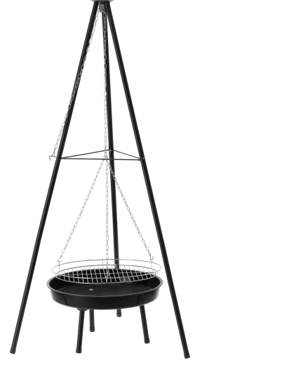 Det lette men solidt forstærkede trefodsstativer giver stabilitet i haven, ved sommerhuset og på camping. Den enkle konstruktion samles og skilles ad hurtigt, hvilket gør den ideel til weekendture og sæsonbrug. Prøv klassikere – steaks, pølser, majs og grøntsager – med den karakteristiske smag fra åben ild.