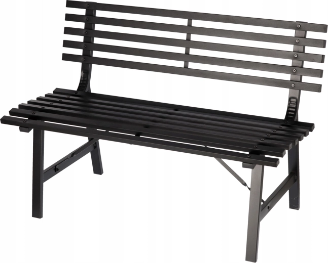 Denne metalhavebænk kombinerer et rent design med funktionalitet. Stålkonstruktionen med boltede samlinger sikrer styrke og stabilitet, mens lamelsædet og ryglænet giver hurtig vandafledning og nem vedligeholdelse. Den sorte overflade passer nemt til enhver havestil eller terrasse.