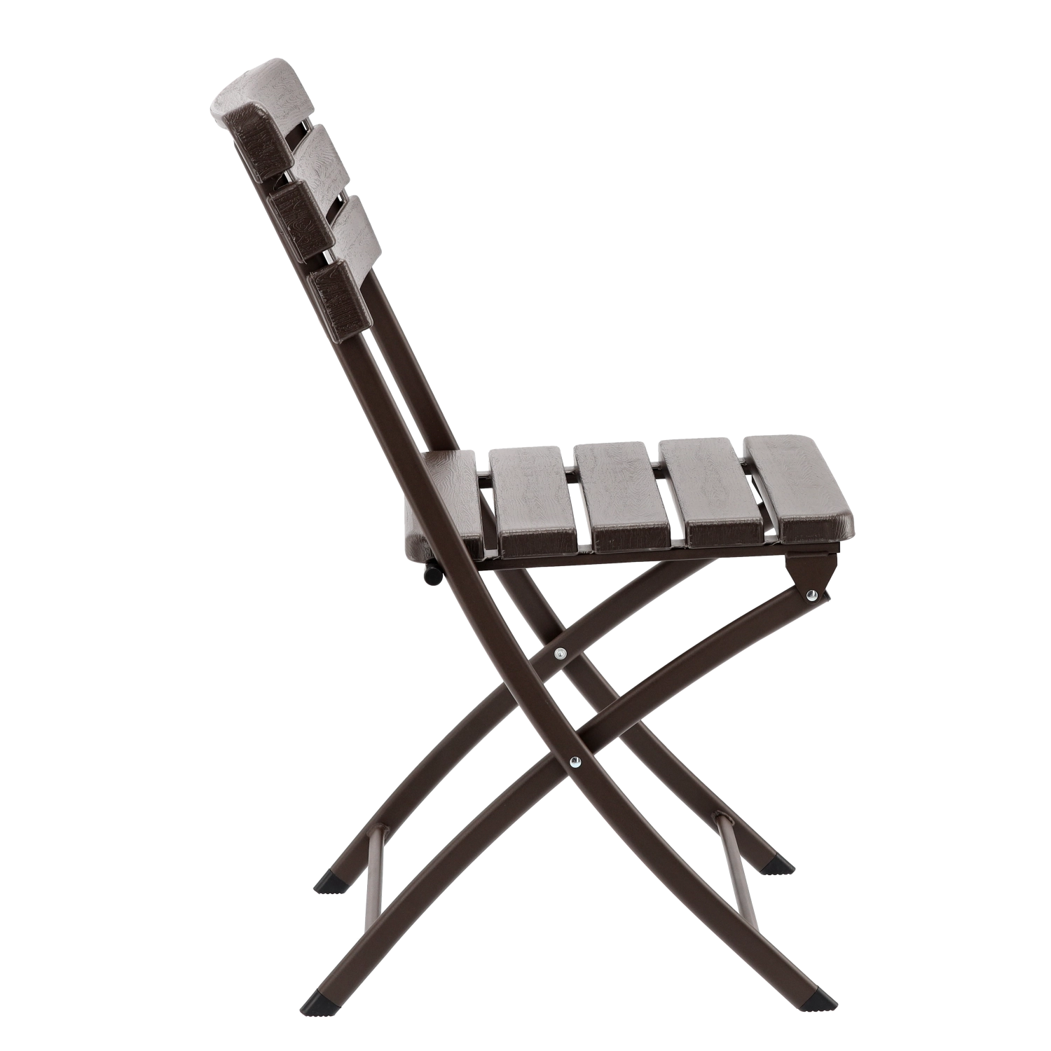 Denne kompakte og slidstærke stol er ideel til daglig udendørs brug. Den brune overflade med træeffekt virker naturlig og elegant, mens den solide stålkonstruktion sikrer stabilitet og lang holdbarhed. Sammenklappet fylder den minimalt, hvilket gør den perfekt til små rum og på farten.