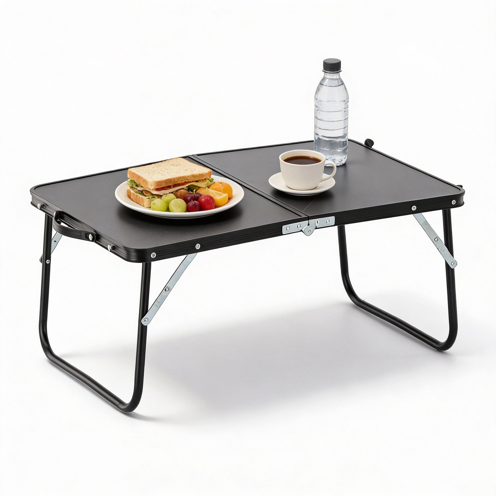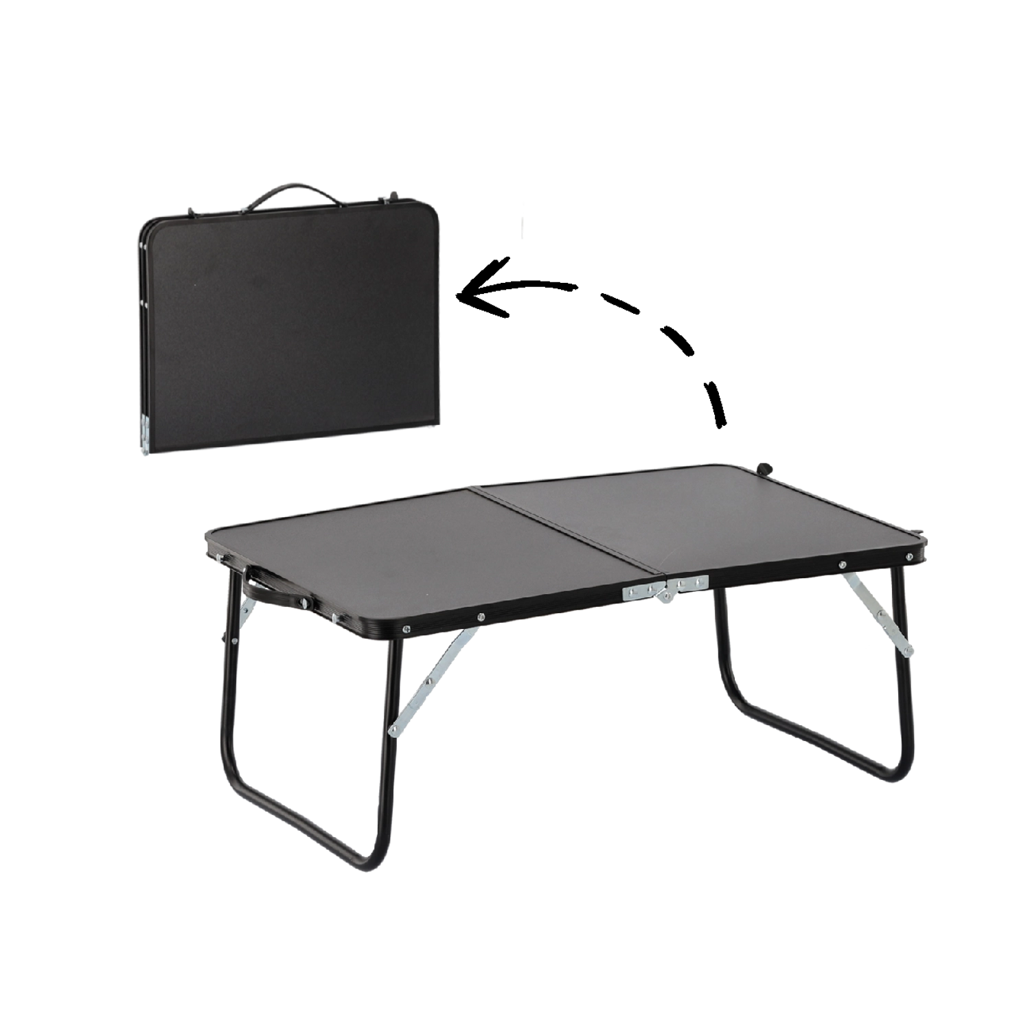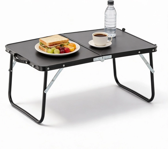 Nyd komfort hvor som helst udendørs med det praktiske sammenklappelige bord i elegant sort. Det foldes ud på få sekunder og giver en stabil overflade til kaffe, bog, kort eller forfriskninger. Efter brug klappes det sammen til en flad “kuffert”, så det ikke fylder i bilen eller rygsækken.