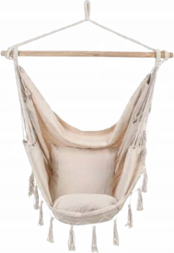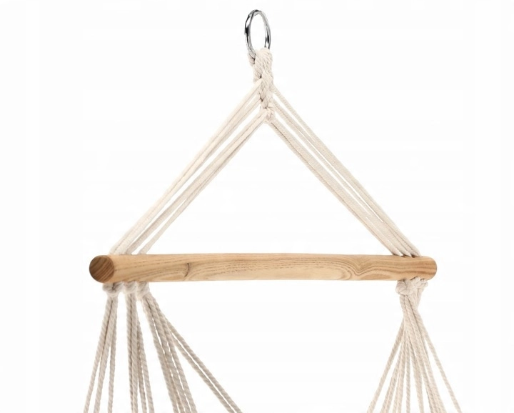 Stærke ophængningsreb og en solid træstang sikrer stabilitet, mens en behagelig blanding af bomuld og polyester giver komfort og holdbarhed. Maksimal belastning 150 kg giver tryghed til daglig brug.