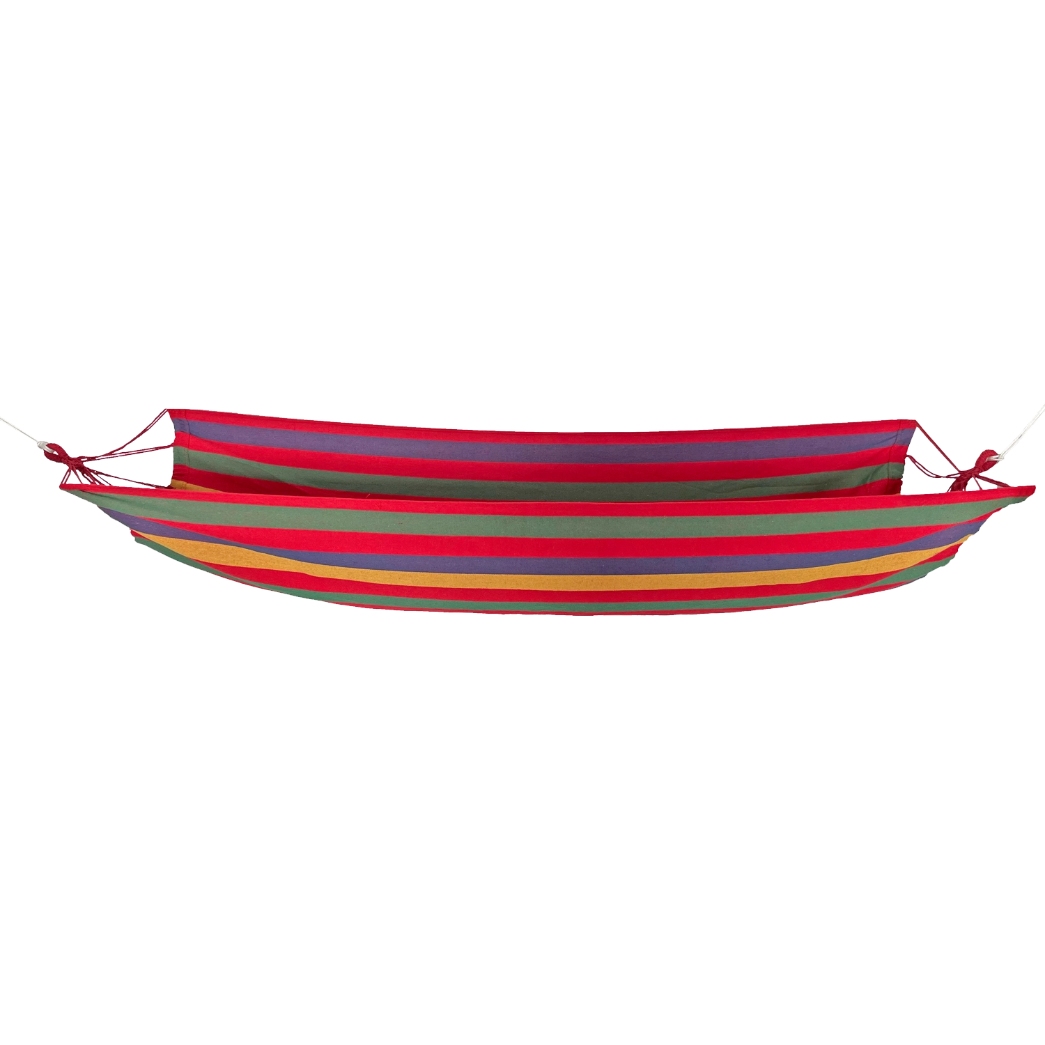 Den stilfulde hængekøje i energiske røde striber giver din udendørsplads en feriestemning. Takket være kombinationen af polyester og bomuld er stoffet stærkt, åndbart og behageligt at røre ved, hvilket gør det ideelt til længere afslapning i solen eller i skyggen under træerne.