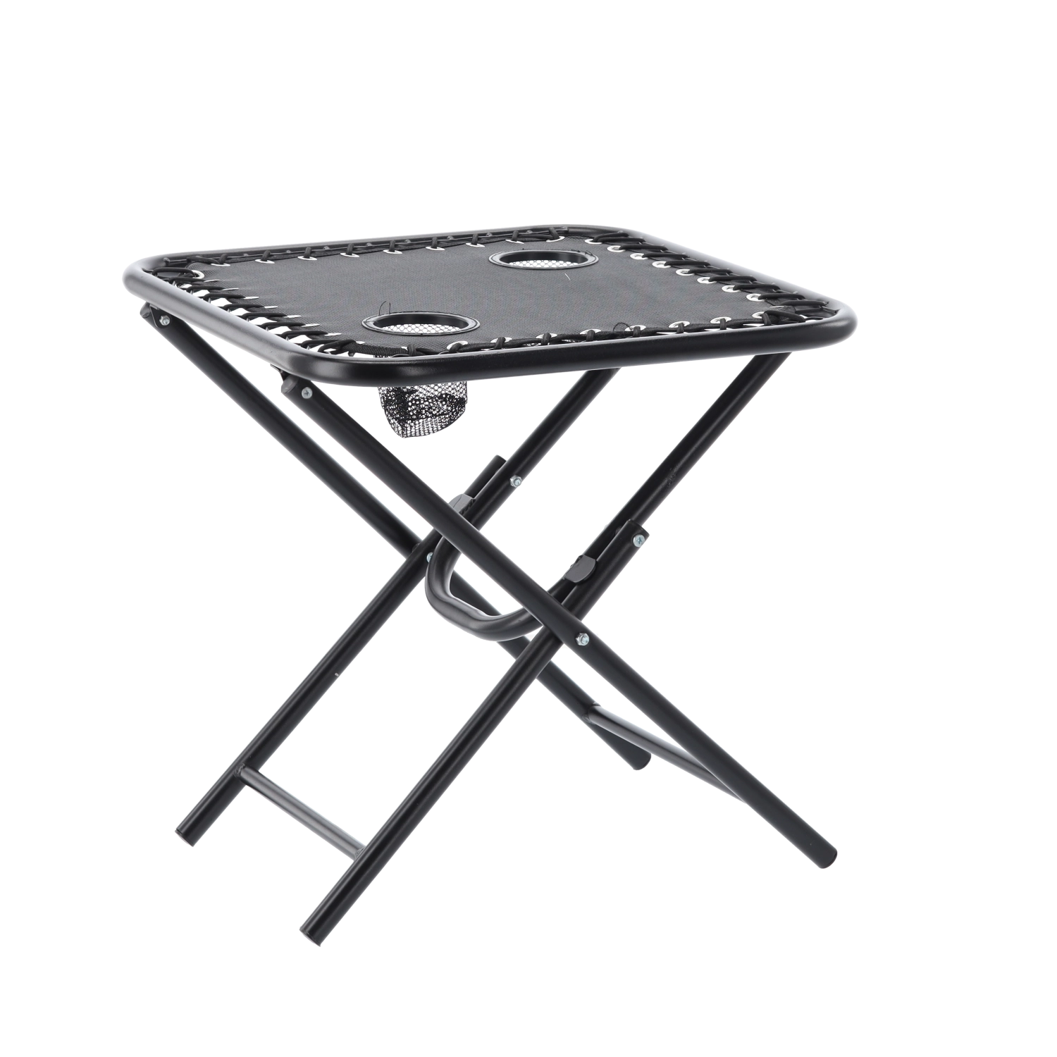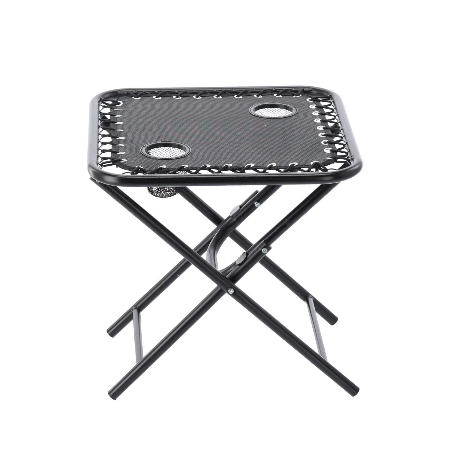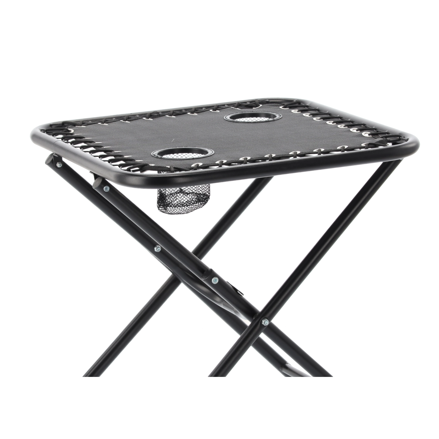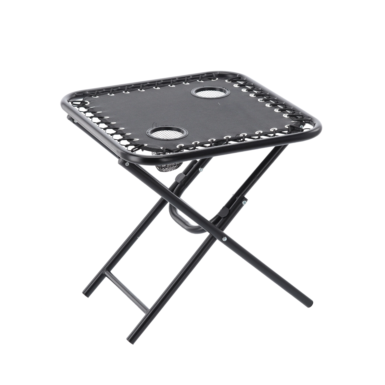 Leder du efter et praktisk bord til rejsen, som kan sættes op på få sekunder? Dette sorte sammenklappelige turistbord kombinerer stabiliteten fra en metalramme med et let og bærbart design. To indbyggede holdere sikrer kopper og dåser, så du altid har dine drikkevarer lige ved hånden.
