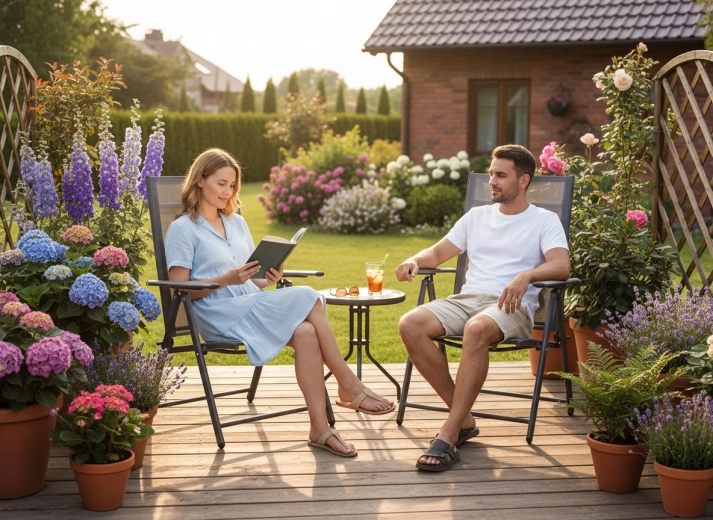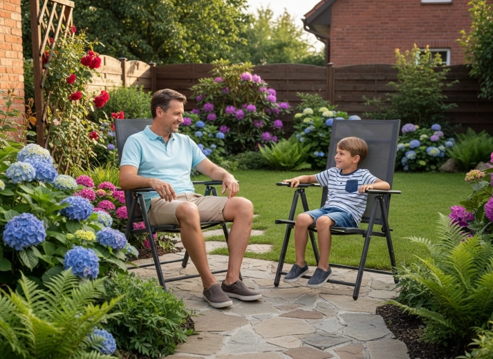 Denne sammenklappelige havestol kombinerer en robust stålramme med åndbart tekstil, der tørrer hurtigt og føles behageligt selv på varme dage. Takket være 7 ryglænspositioner indstiller du nemt den ideelle sidde- eller hvileposition – fra måltider ved bordet til afslapning i skyggen.