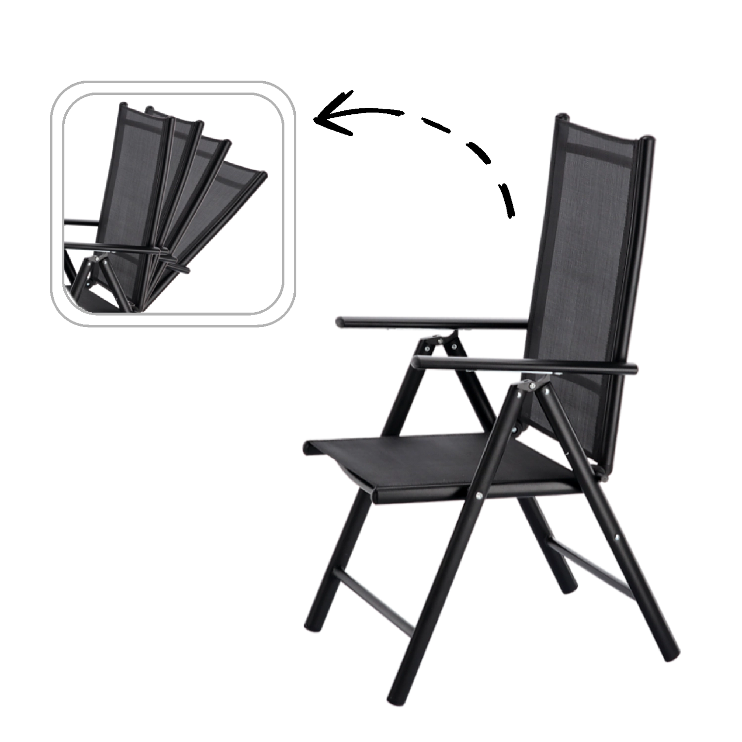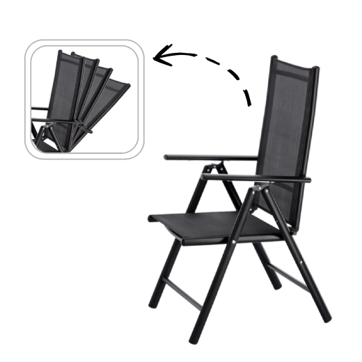 Takket være 7 ryglænspositioner skifter du nemt fra spisestilling til solrelaks. Stolen kan foldes sammen på et øjeblik, så den sparer plads ved opbevaring og er ideel til rejser eller ved poolen.
