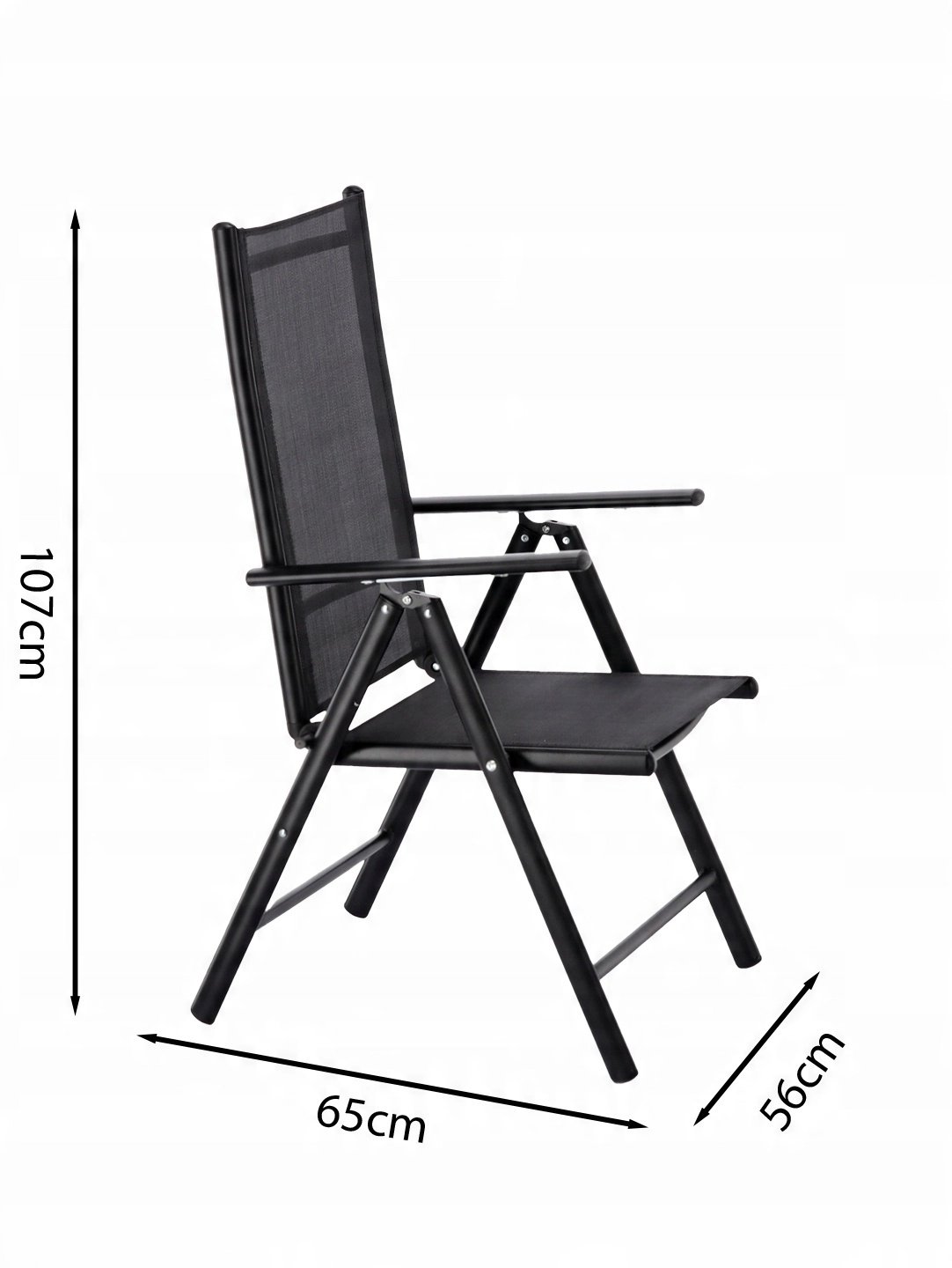 Nyd komfort udendørs med en kvalitets-sammenklappelig stol, der passer perfekt til enhver siddeplads. Den stabile aluminiumsramme med pulverlakering er vejrbestandig, mens det åndbare netstof på sæde og ryglæn giver behagelig luftcirkulation selv på varme dage.