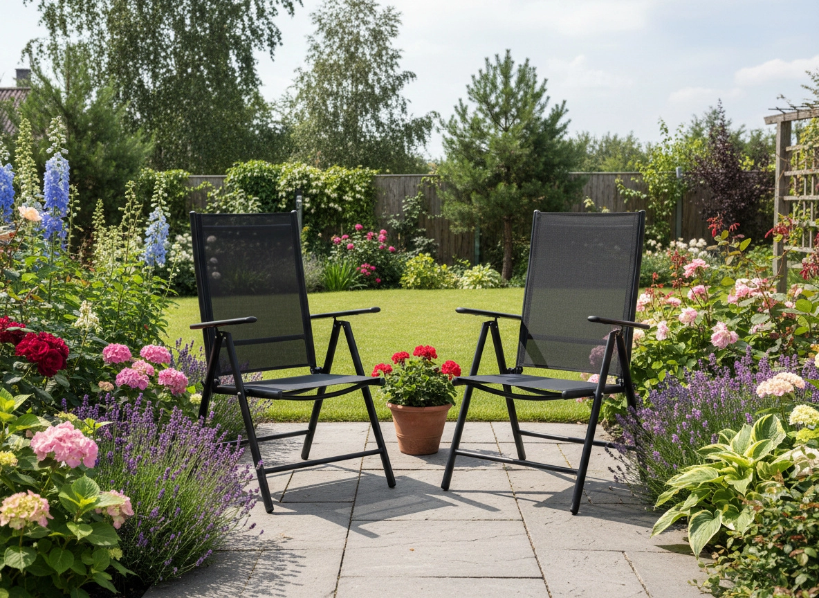 Elegant og let havestol med en solid aluminiumsramme tilbyder ryglæn med 7-positioners indstilling, åndbart tekstil for behagelig siddekomfort og en sammenklappelig konstruktion for nem opbevaring og transport. Den slidstærke overfladebehandling og de komfortable armlæn sikrer lang levetid og høj komfort på terrasse, altan og i haven.
