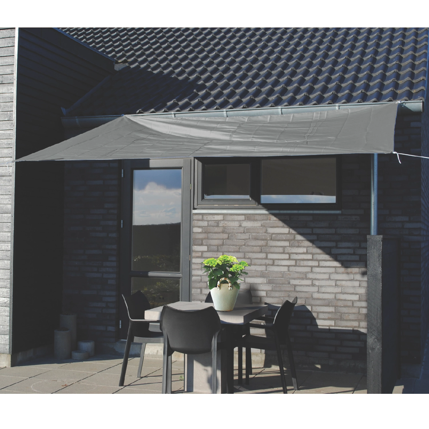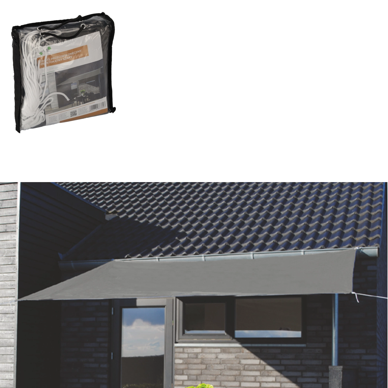 Praktisk og stilfuld skyggepresenning til terrasse, altan og have i størrelsen 3 × 2,5 m giver behagelig skygge og beskyttelse mod UV-stråling. Takket være vandafvisende polyester med en vægt på 160 g/m² giver den komfort selv i let regn. I en universel grå farve passer den let ind i alle udendørs miljøer og er nem at montere med de medfølgende snore.