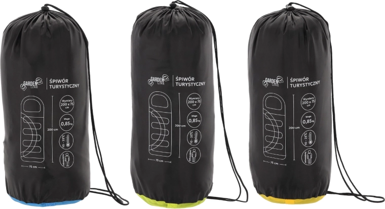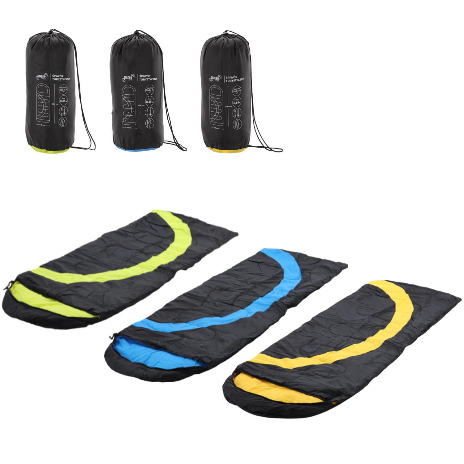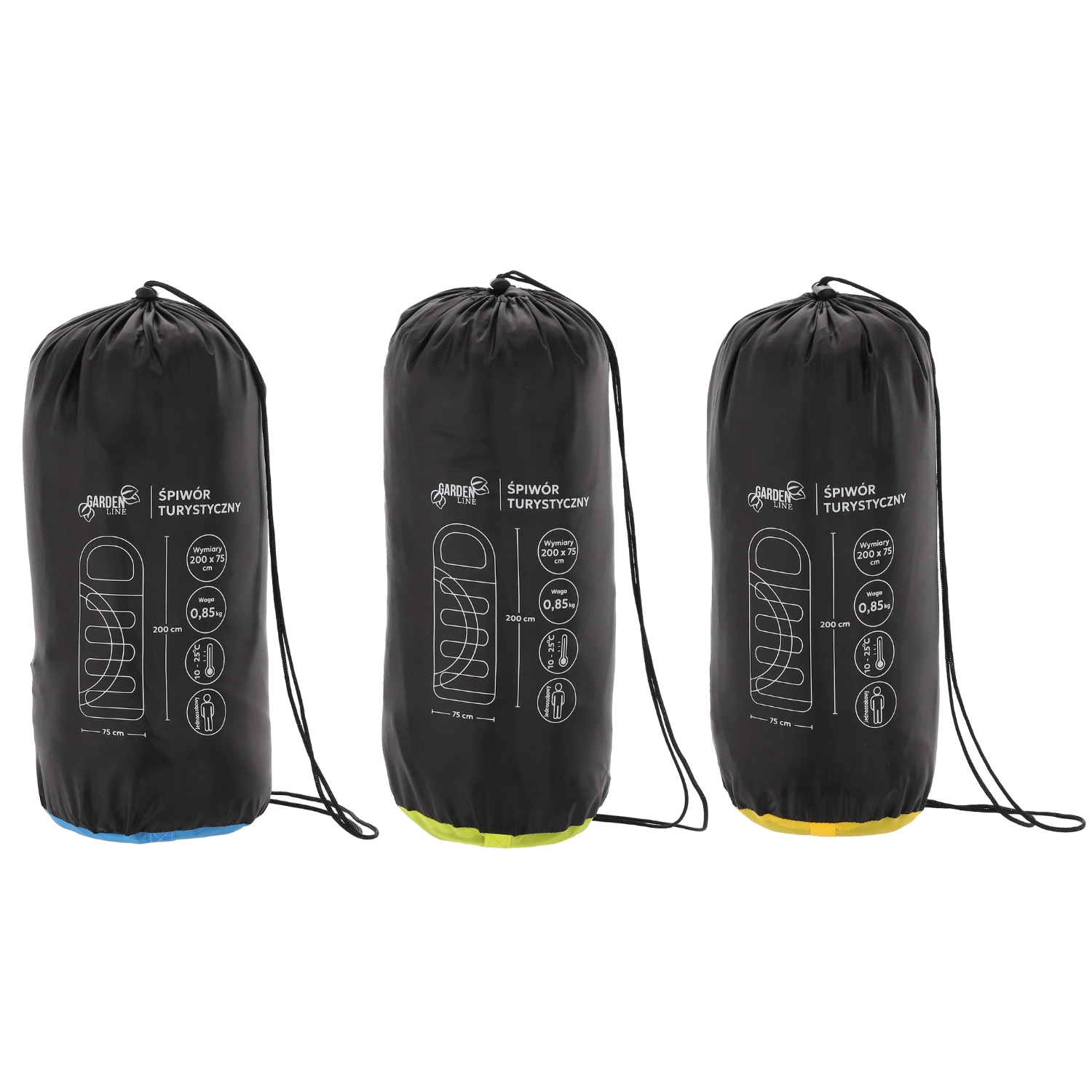 Takket være en vægt på kun 0,85 kg og den medfølgende pose er soveposen nem at bære og pakke i rygsækken. Robust lynlås i fuld længde gør det let at ventilere og komme ind og ud. Farvevarianter (sort–blå, sort–gul, sort–lime) giver dit udstyr et friskt look.
