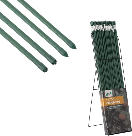 Denne belagte stålstang er en ideel støtte til klatreplanter, buske, sarte blomster og frugtbærende grøntsager. Den spidse ende gør det let at stikke den i jorden, og de små ribber langs hele længden forhindrer, at den glider. Takket være den robuste metal kerne og PE-belægningen er stangen meget modstandsdygtig over for skader og vejrpåvirkninger, samtidig med at dens grønne udførsel naturligt går i ét med beplantningen.