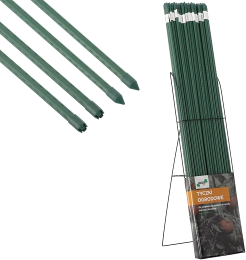 Denne beklædte pind er ideel til støtte af klatreplanter, buske, sarte blomster samt grøntsager og frugtplanter. Metalkernen giver styrke, og polyethylenoverfladen beskytter mod korrosion og fugt. Der medfølger en stålfod, som udvider mulighederne for forankring og organisering i bed eller drivhus.