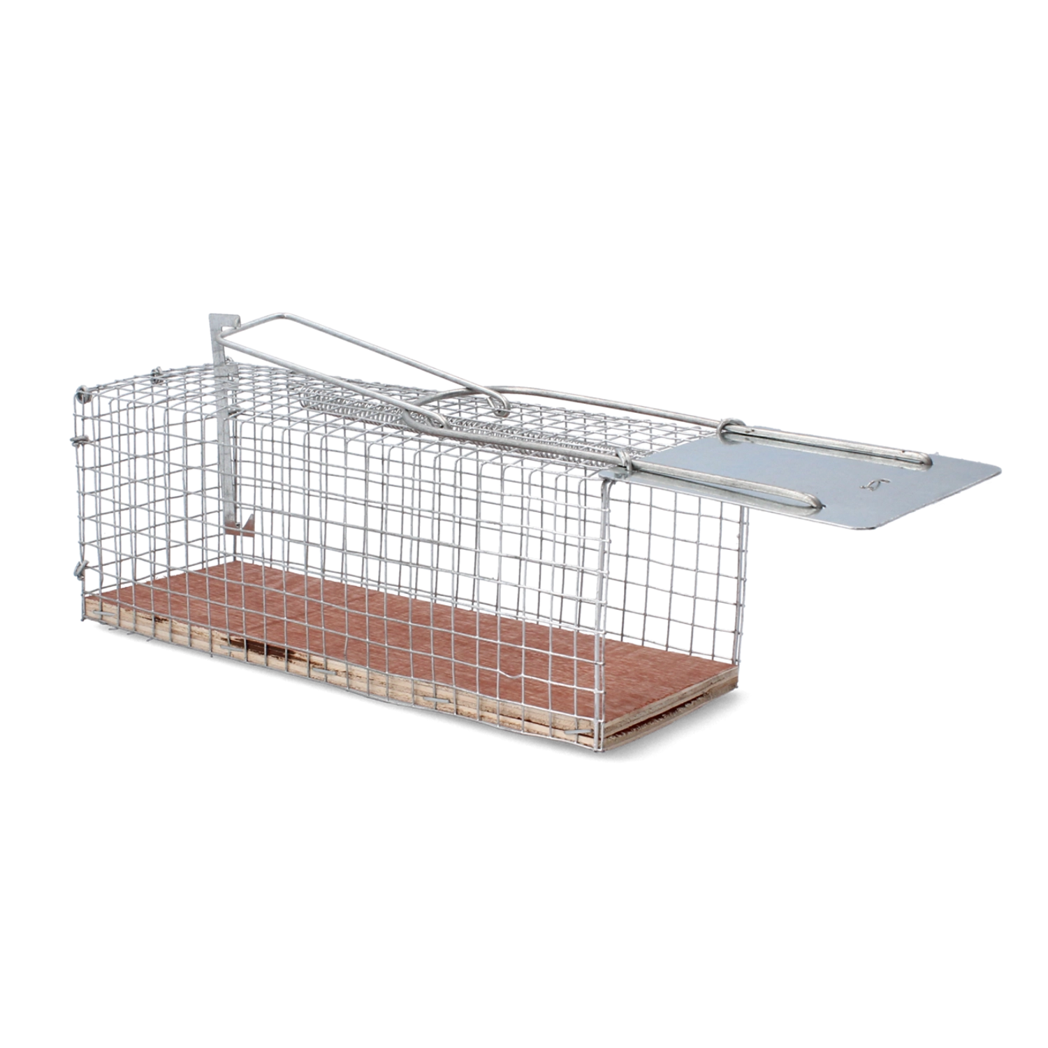 Den robuste udførelse kombinerer metaldele og gitter med en træbase, hvilket sikrer holdbarhed og stabilitet. Den integrerede krog til lokkemad hjælper effektivt med at tiltrække skadedyr og øger fangstsuksessen.