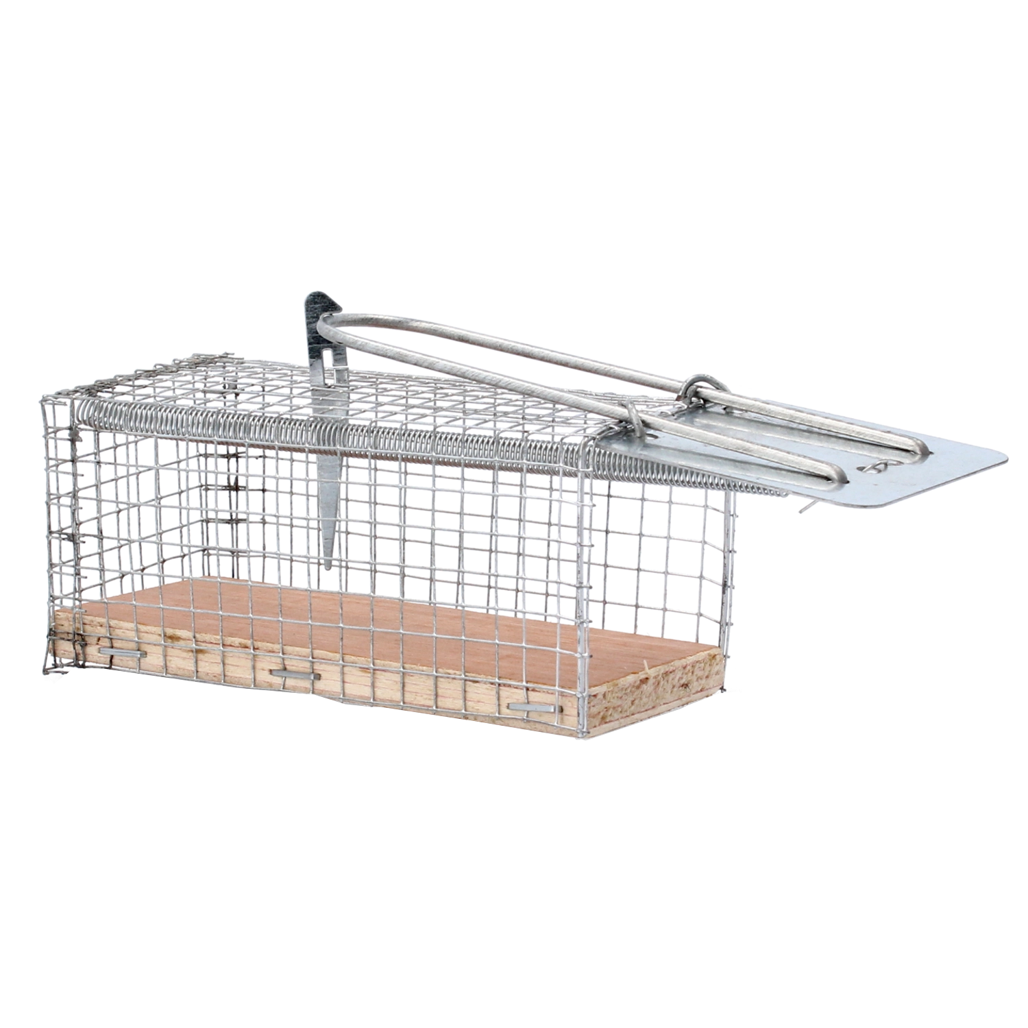 Human og effektiv løsning til indfangning af små skadedyr uden at gøre dem fortræd. Denne levende fælde har en pålidelig faldlåsmekanisme, én indgang og nem installation. Takket være den robuste metalkonstruktion og den træbaserede bund er den ideel til hjem, lagre og erhverv. Inkluderer krog til lokkemad for øget effektivitet.
