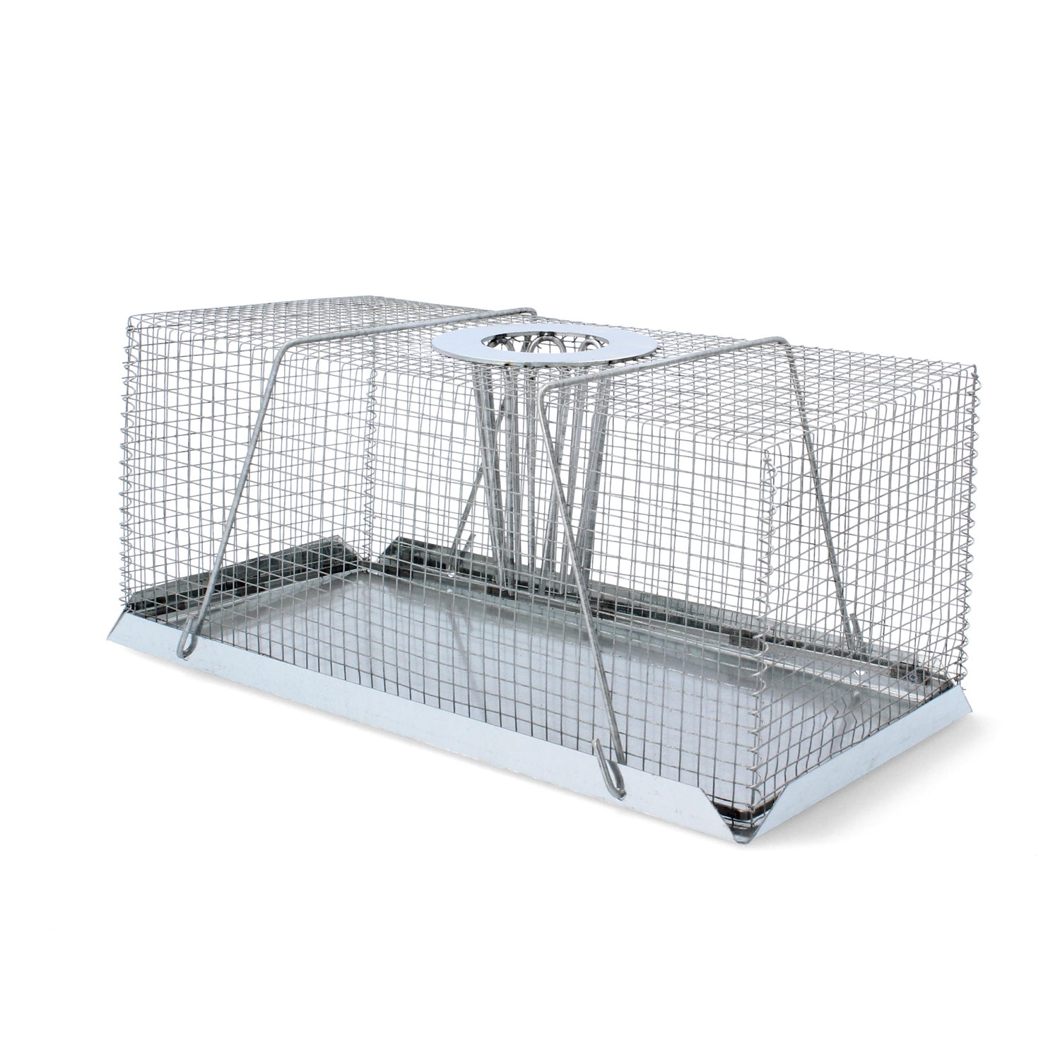 Denne levende fælde i metal er designet til sikker og human indfangning af små skadedyr som mus og rotter. Konstruktionen med øverste indgang gør det let for gnaveren at gå ind, mens mekanismen forhindrer flugt. Den egner sig perfekt til køkkener, kældre, garager, lagre og produktionshaller, hvor du ønsker en ren og etisk form for skadedyrsbekæmpelse.