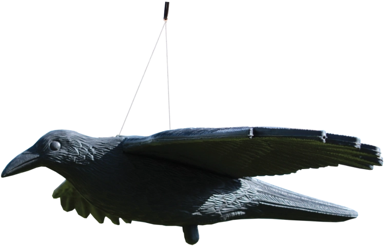 Den realistiske ravnesilhuet er en gennemprøvet måde at begrænse fugle på en ikke-invasiv og kemikaliefri måde på din grund. De større mål øger synligheden og forbedrer skræmmeeffekten selv på længere afstand.
