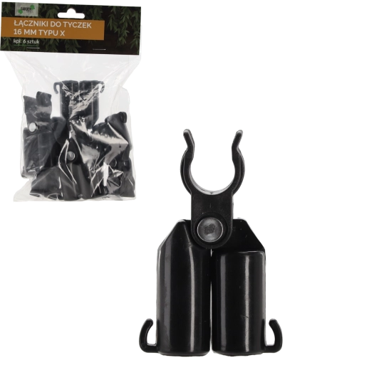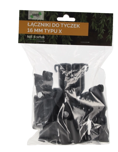 Praktisk sæt med 6 krydskoblinger til stænger med en diameter på 16 mm, så du hurtigt kan opbygge en stabil ramme og støttekonstruktioner til klatreplanter. Ideel til bønner, ærter og anden grøntsager, der kræver støtte.