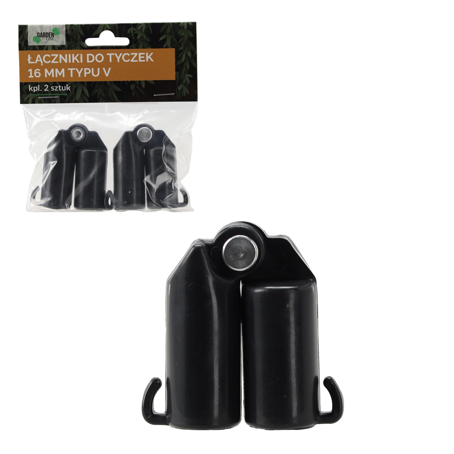 Praktisk sæt med 2 V-formede koblinger gør det let og hurtigt at forbinde to støttepinde med en diameter på 16 mm og skabe en stabil støtte til planter, skræddersyet til deres behov. De er fremstillet af kvalitetsplast med UV-modstand, som tåler krævende udendørsforhold og lover lang levetid.