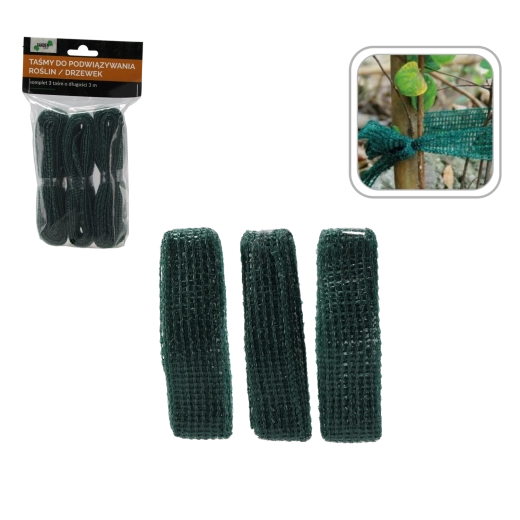 Båndene fastgør forsigtigt planten til støtten og forhindrer skader på bark og stængler takket være det åndbare net. Ideelle til unge træer og buske.