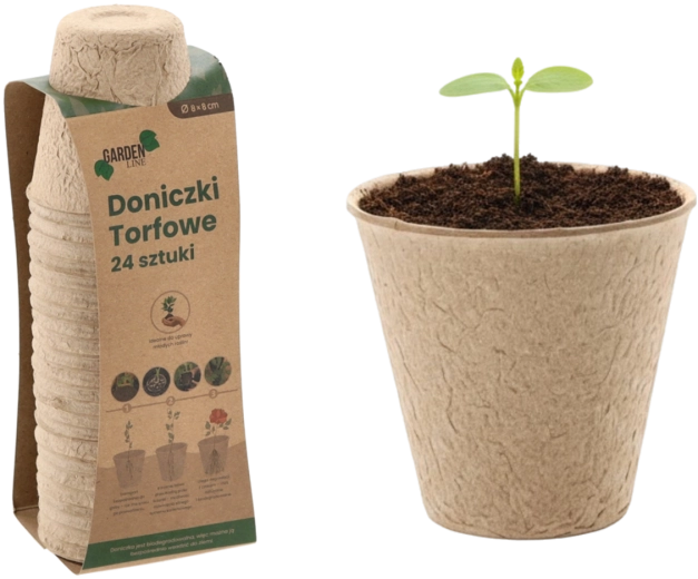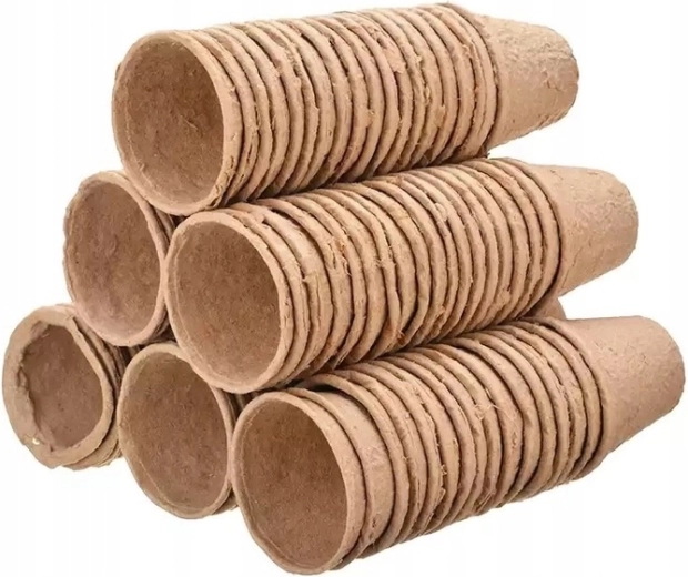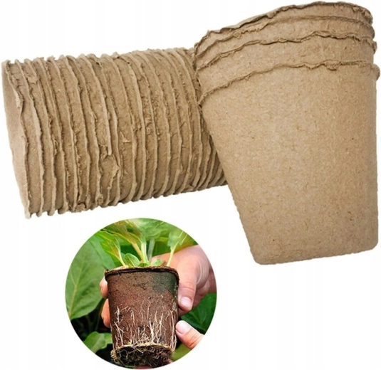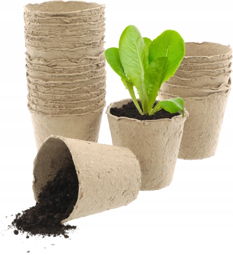 Potter af presset cellulose/tørv kan plantes direkte i bedet. Materialet nedbrydes naturligt og beskytter rødderne mod skader ved omplantning.