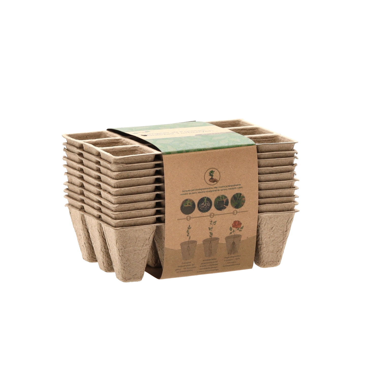 Materialet af presset papir-/tørvemasse nedbrydes i jorden efter udplantning. Ingen unødvendig plast, sundere rødder og mindre affald.