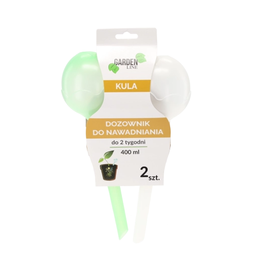 Et praktisk sæt med to vandingskugler i holdbar plast sikrer dine planter en regelmæssig og skånsom vanding, selv når du ikke er til stede. Fyld dem blot med vand, stik dem i jorden, og systemet frigiver automatisk vand efter behov. Hver kugle rummer 400 ml og kan give op til 2 ugers vanding – ideelt til ferier eller for travle og glemsomme planteejere.