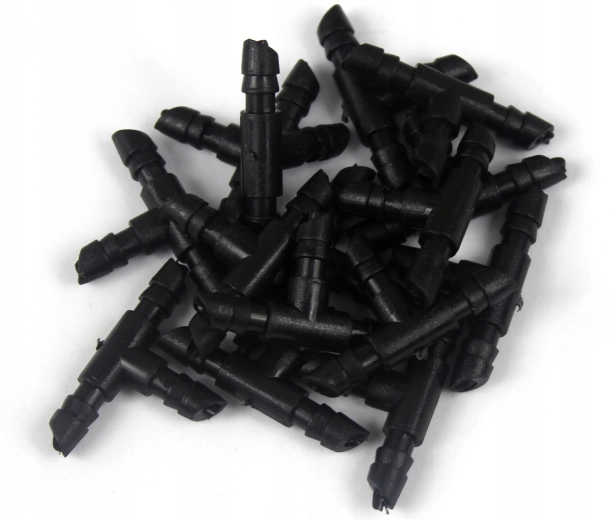 Fleksible slanger, T-stykker og endestykker gør det hurtigt at samle systemet i bedet og oven på ukrudtsdug. Holdere med søm holder føringen præcist, hvor den skal være.