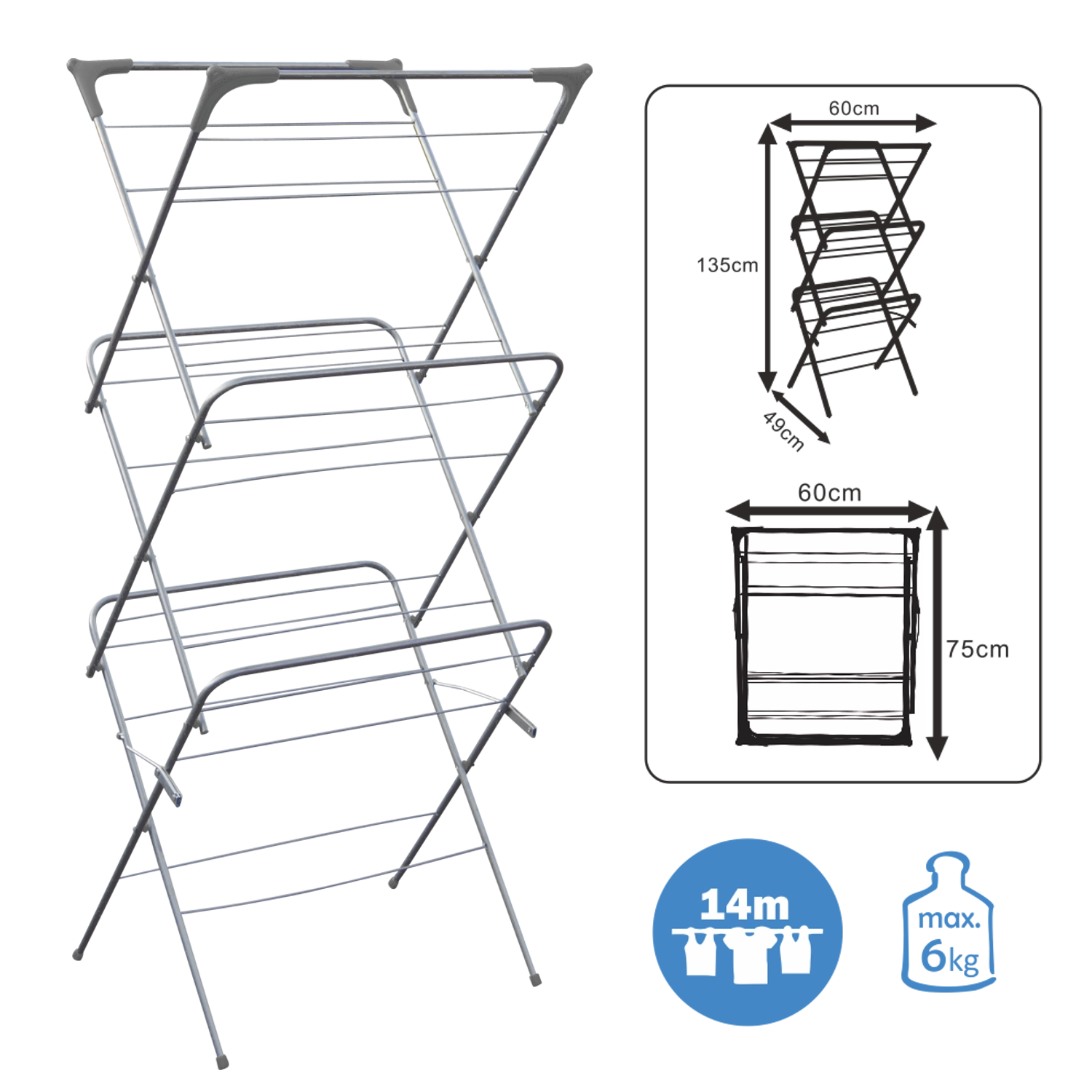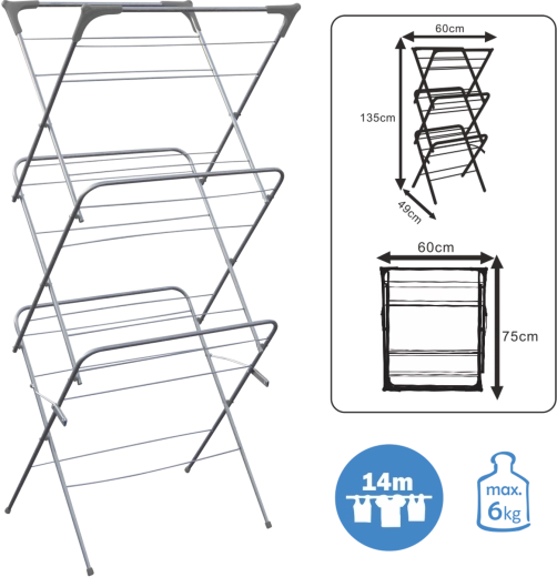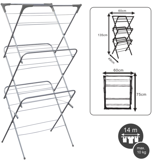 - sammenklappeligt tørrestativ til tøj med tre niveauer