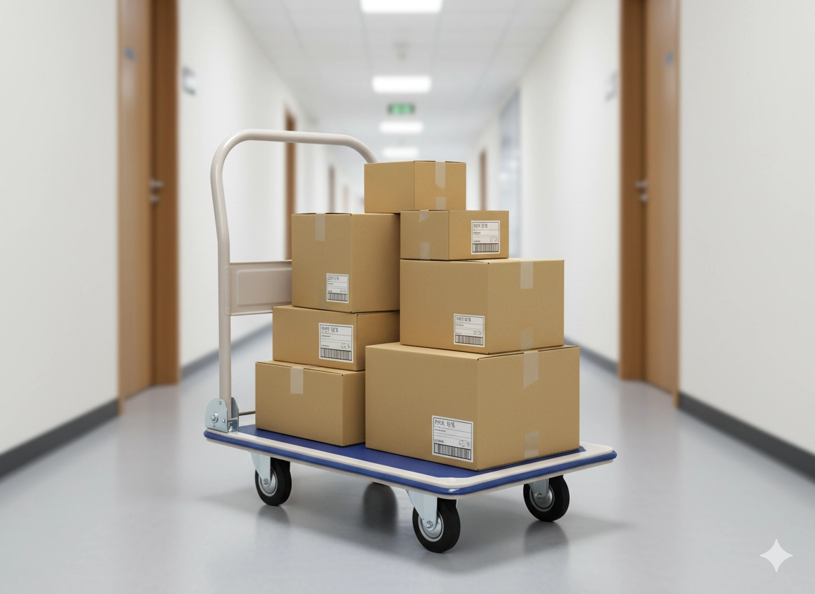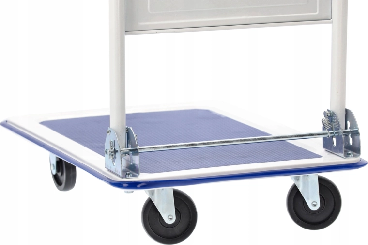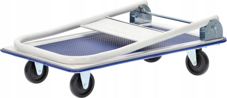 De fire drejelige hjul sikrer jævn bevægelse selv i smalle gange, mens det ergonomiske sammenklappelige håndtag øger komforten ved styring af vognen. Takket være de kompakte mål kan den let opbevares selv i mindre rum – ideel til lager, postrum, værksted eller kontor.