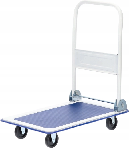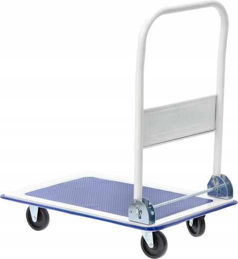 Leder du efter en pålidelig og kompakt transportvogn til hjemmet, kontoret eller lageret? Denne platformvogn med en kapacitet på 150 kg kombinerer en robust konstruktion, komfortabel betjening og mulighed for hurtigt at folde håndtaget for pladsbesparende opbevaring. Den skridsikre tekstur på platformen holder lasten sikkert på plads og mindsker risikoen for skader på de transporterede genstande.