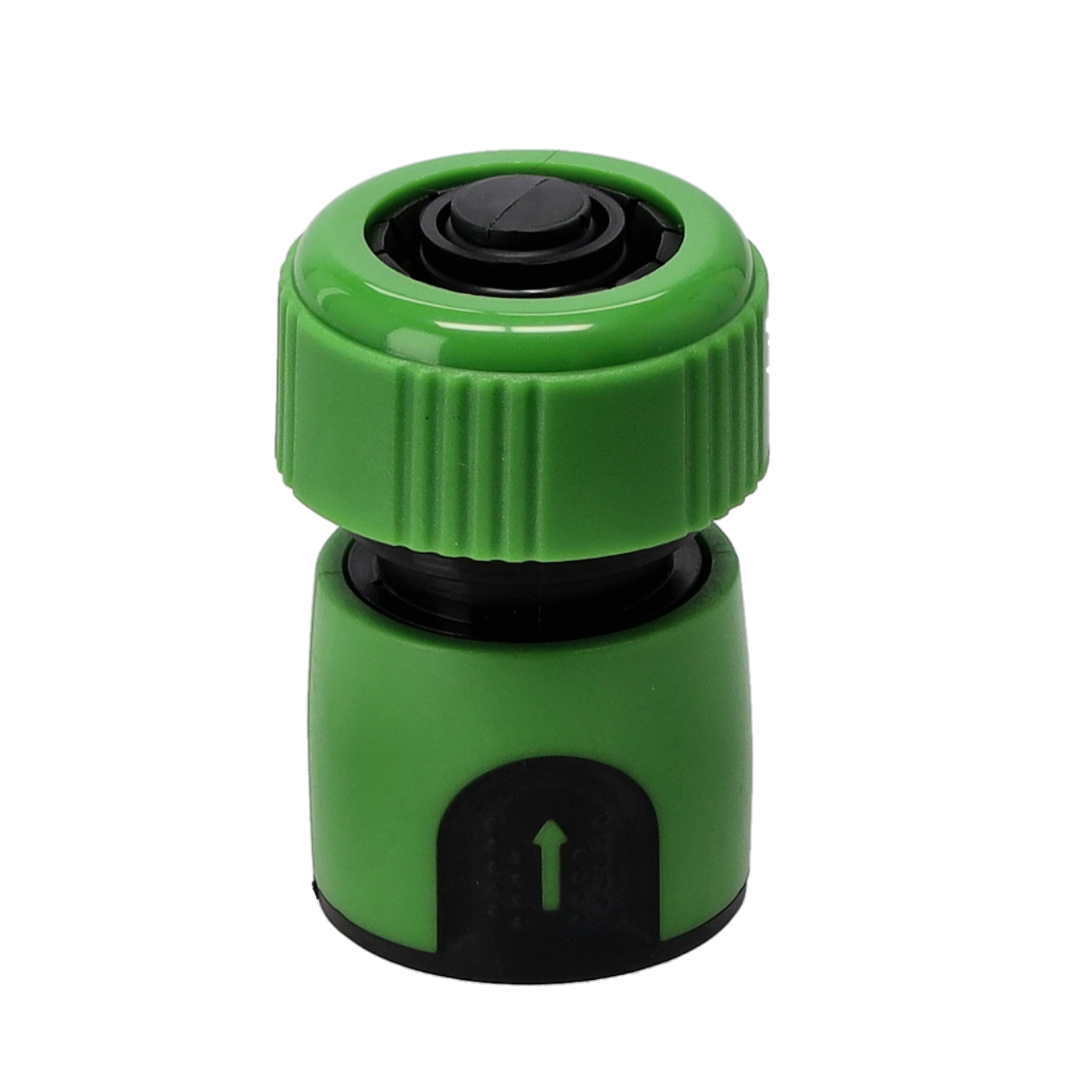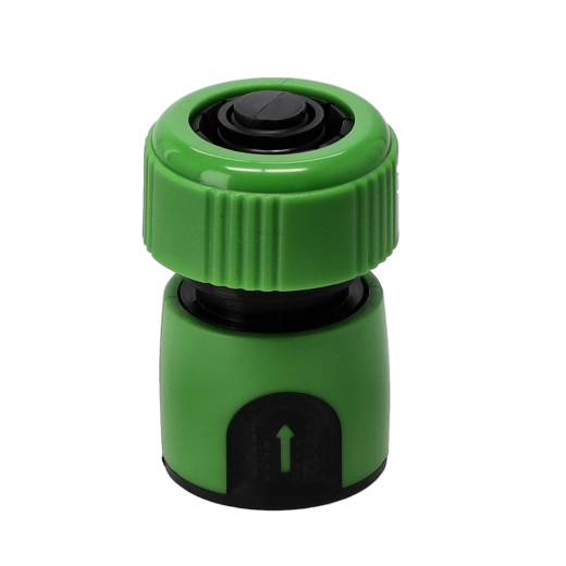 Universel 3/4" hurtigkobling af slidstærk plast til nem tilslutning af haveslange til vandhane, spreder eller sprøjtepistol. Den integrerede STOP-funktion muliggør udskiftning af tilbehør uden at lukke for vandet, og den skridsikre TPE-overflade sikrer sikkert greb og komfortabel betjening.