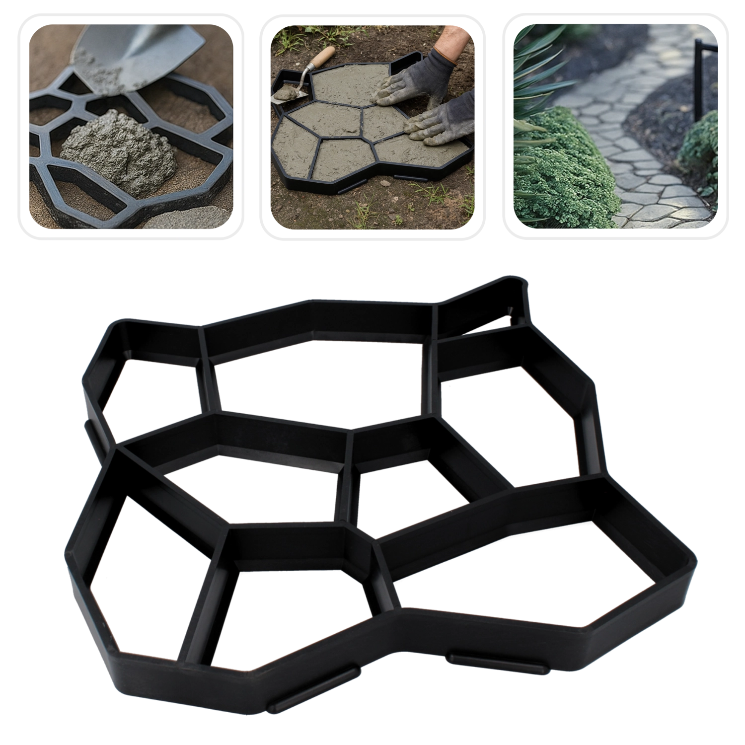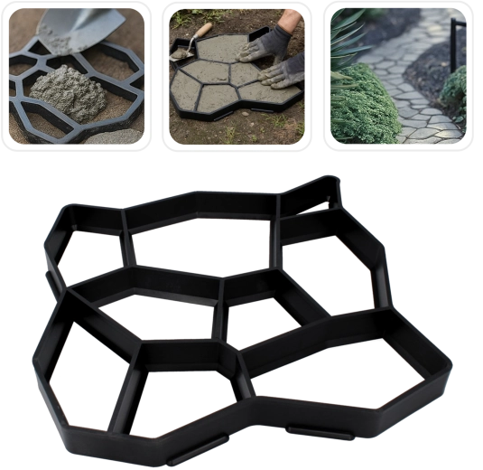 Denne form til betonfliser gør det nemt og præcist at skabe æstetiske stier og flader efter dine ønsker. Høj modstandsdygtighed mod revner og stærk, forstærket plast sikrer lang levetid selv ved gentagen brug. Den profilerede kant efterligner natursten, så det færdige resultat virker naturligt og elegant.