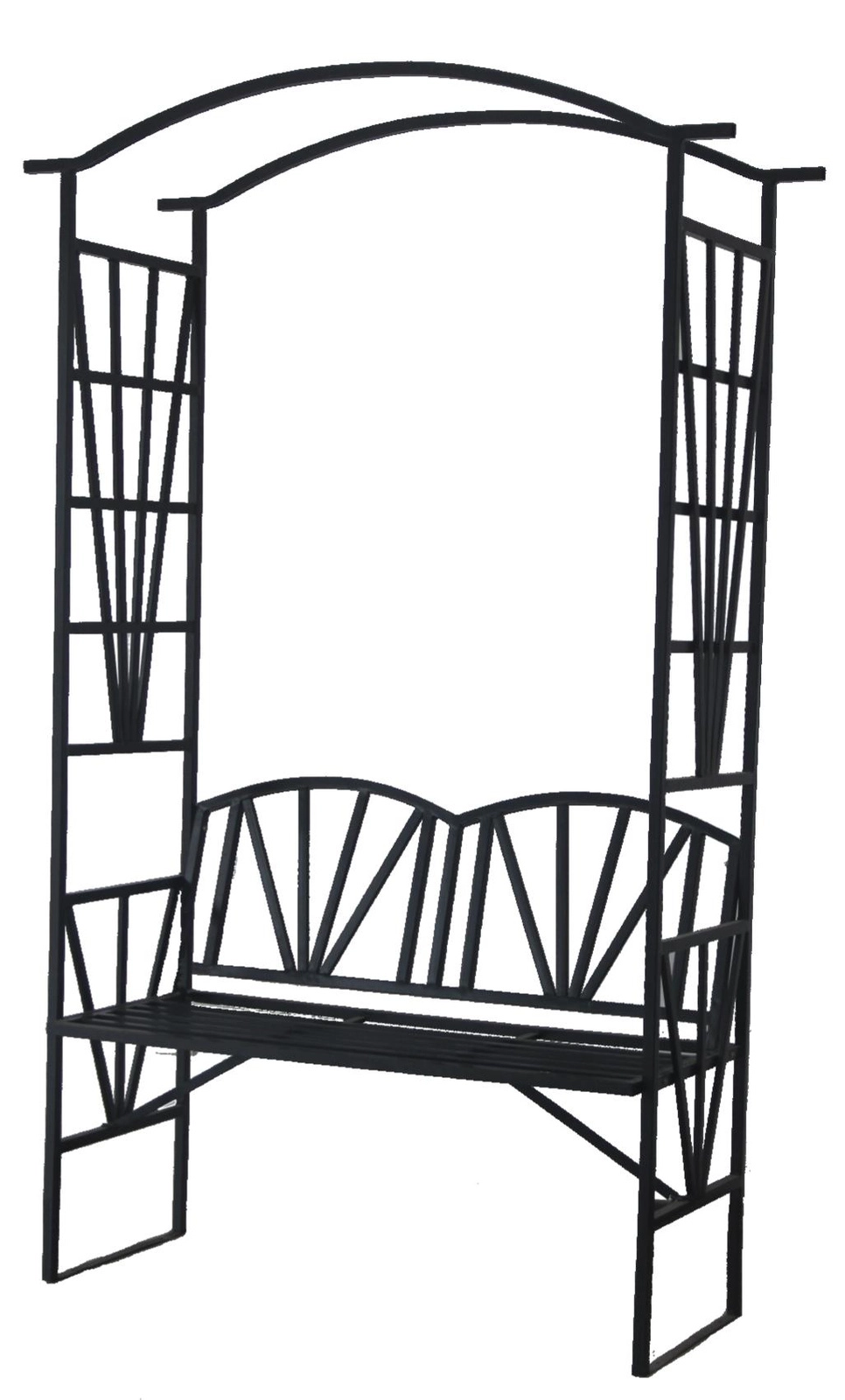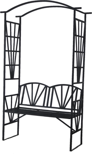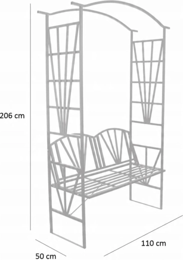 Denne stilfulde pergola med buet top og integreret bænk tilbyder behagelig siddeplads til to personer og samtidig pålidelig støtte til roser, klematis eller kaprifolie. Den sorte pulverlak beskytter metalkonstruktionen mod korrosion og gør vedligeholdelsen lettere. Ideel til haver, terrasser og gårdrum, hvor du vil forene æstetik og funktionalitet.