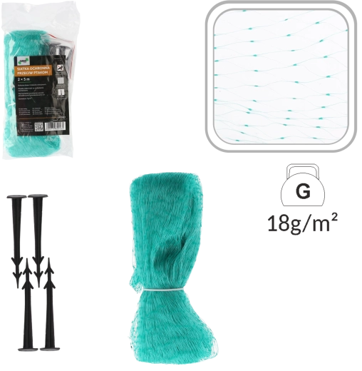 Praktisk og let beskyttelsesnet mod fugle af kvalitetspolypropylen beskytter høsten mod uønskede besøgende. Takket være den grønne farve er det næsten usynligt i haven, det er tyndt, elastisk og tilpasser sig nemt kroners eller bedes form. Velegnet til kirsebær, surkirsebær, stikkelsbær, blåbær, jordbær og vin. Vejrbestandigt, til gentagen brug. Pakken indeholder 4 pløkker til fastgørelse.