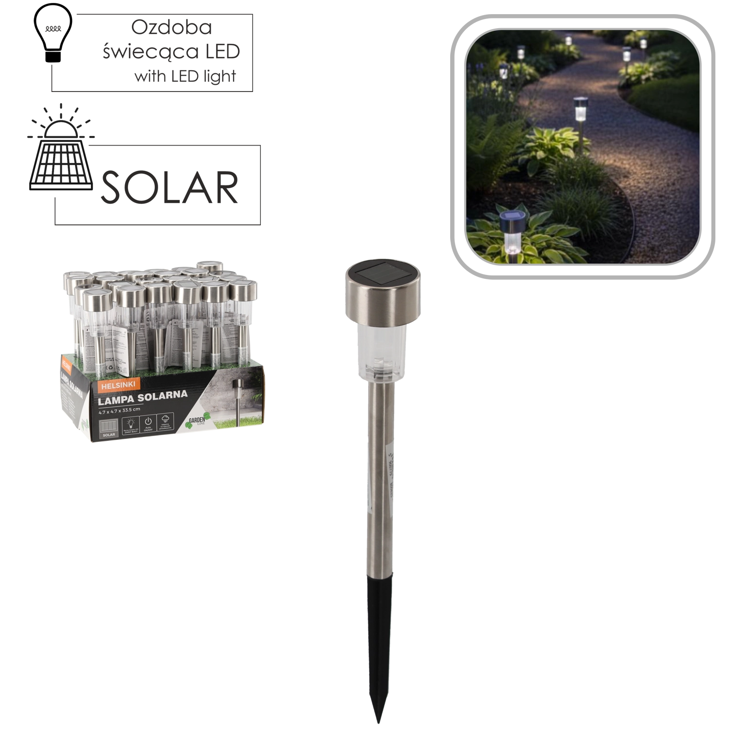 Den stilfulde solcelledrevne LED-lampe HELSINKI er ideel til haven – den giver blid, stemningsfuld belysning uden kabler og uden energiomkostninger. Takket være solcelledrift, rustfrit stål og IP44-klassificering er den modstandsdygtig over for vejrpåvirkninger og passer perfekt langs stier, indkørsler, terrasser og verandaer.