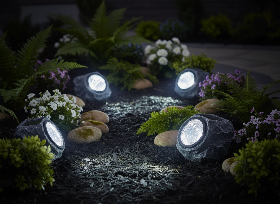 Fire hvide LED-dioder giver et blødt, jævnt lys, og ON/OFF-kontakten gør det nemt at slukke ved længere fravær. Holdbare materialer og IP44 beskytter mod stænk og vejrpåvirkninger. Fås i sort og grå, som naturligt matcher sten og barkflis.