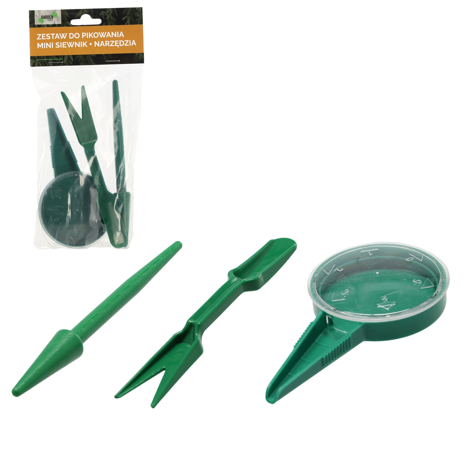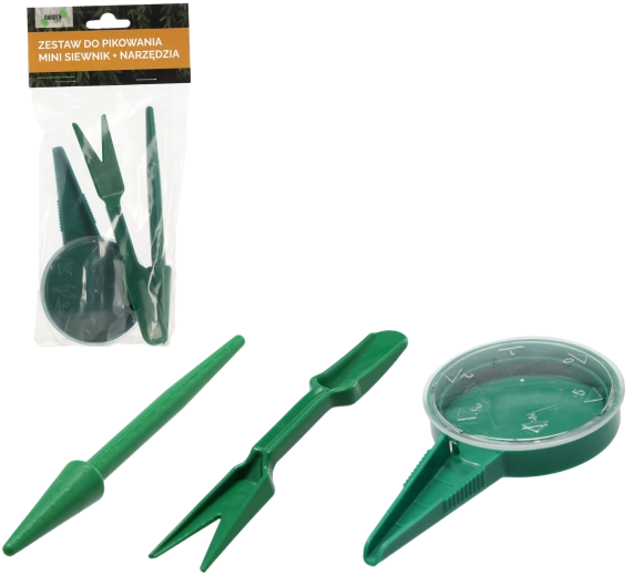 Praktisk sæt til prikling og såning med en minisiør og mini-værktøj, som gør det nemmere at omplante kimplanter, så frø og lave huller i substratet. Fremstillet af kvalitets, robust plast, hvilket gør det let, holdbart og behageligt at arbejde med sarte kimplanter uden unødigt snavs på hænderne.
