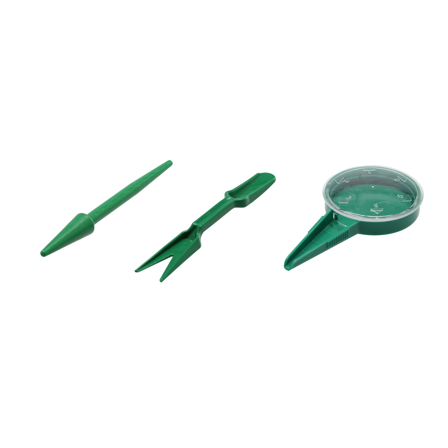 Dette kompakte havesæt er ideelt til alle, der selv forspirer grøntsager eller blomster. Det muliggør præcis og skånsom håndtering ved såning, prikling og ompotning af unge planter. Takket være den lette og stærke plast er værktøjerne nemme at rengøre og tåler langvarig brug.