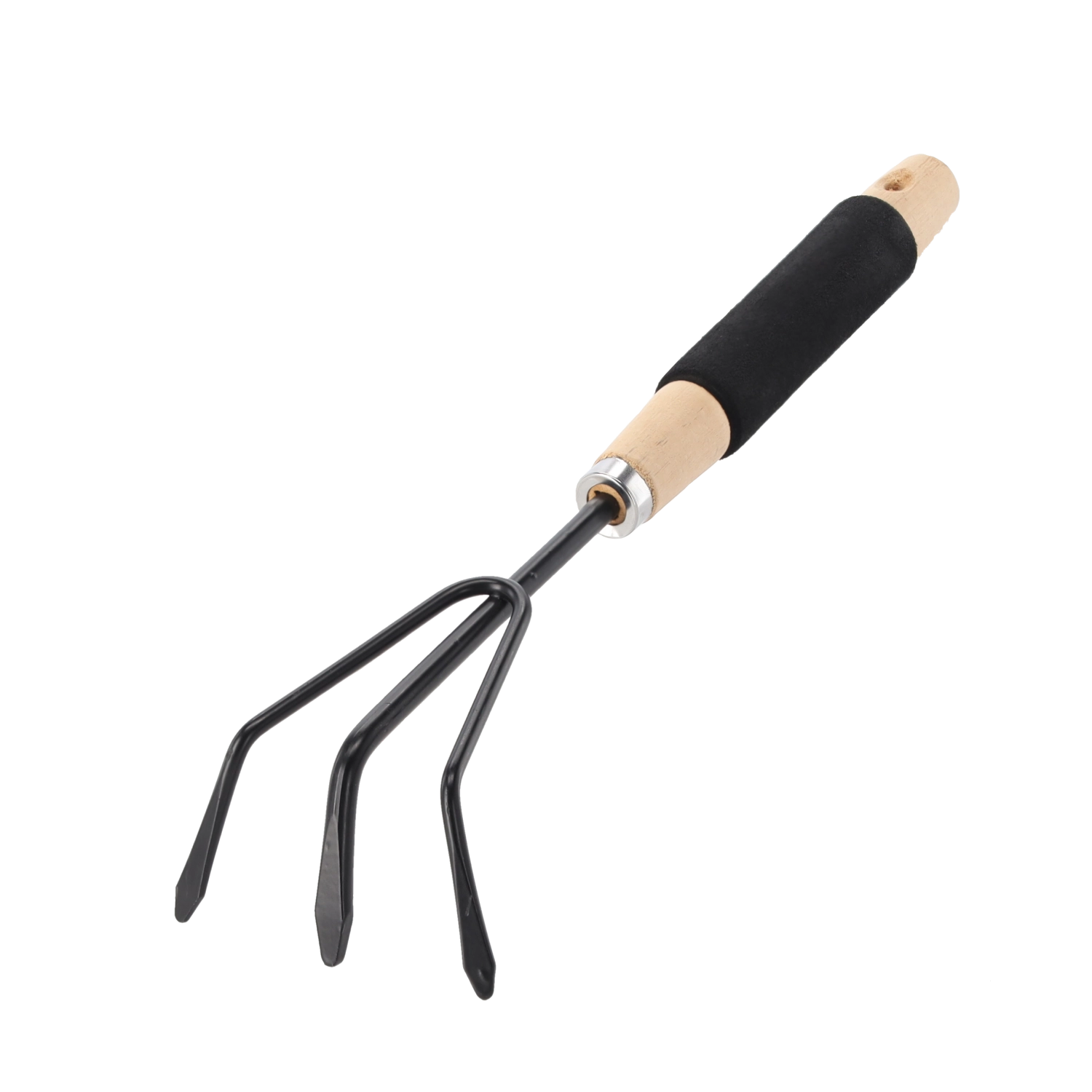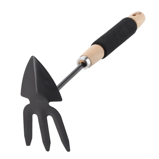 Brug det til løsning, luftning, lugning samt præcis såning. Skovlen gør det lettere at opsamle jord og plante, gaffelen løsner hurtigt komprimeret jord, og hakken/kultivatoren fjerner effektivt ukrudt og jævner bedets overflade.