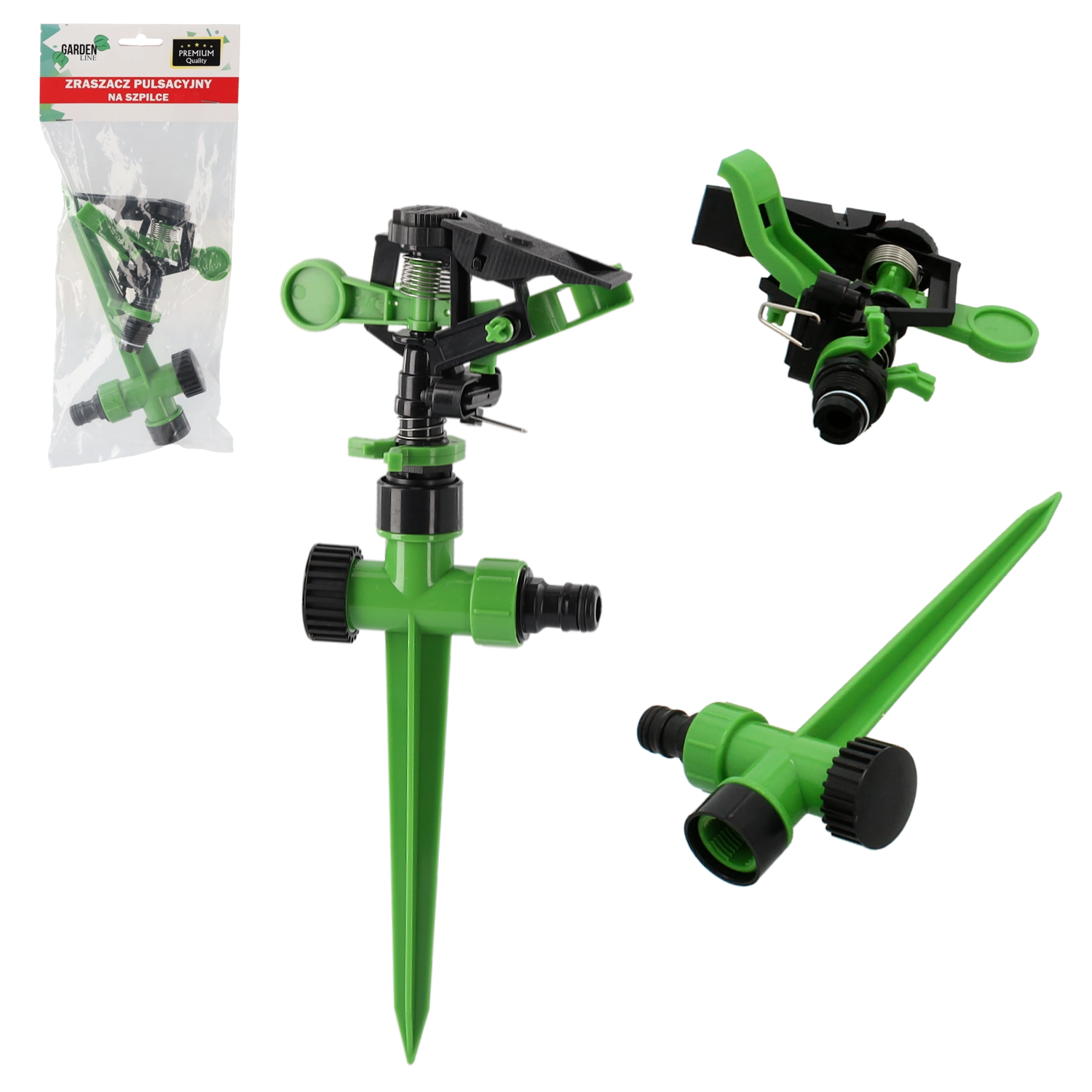 Oplev pålidelig vanding med en impuls-sprinkler på spyd, ideel til både græsplæner og bede. Takket være justerbar rækkevidde og mulighed for sektorspray eller fuld cirkel dækker du nemt større, især cirkulære arealer. Det holdbare ABS-hoved tåler stød og langvarig brug under haveforhold.