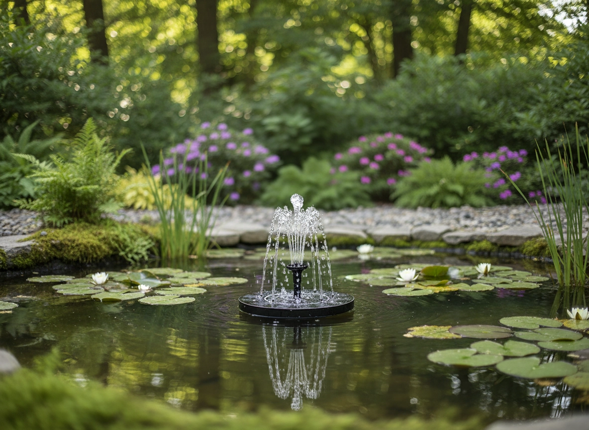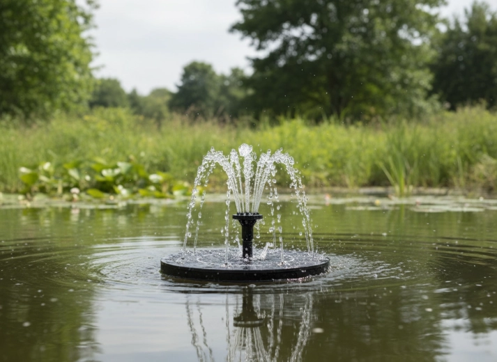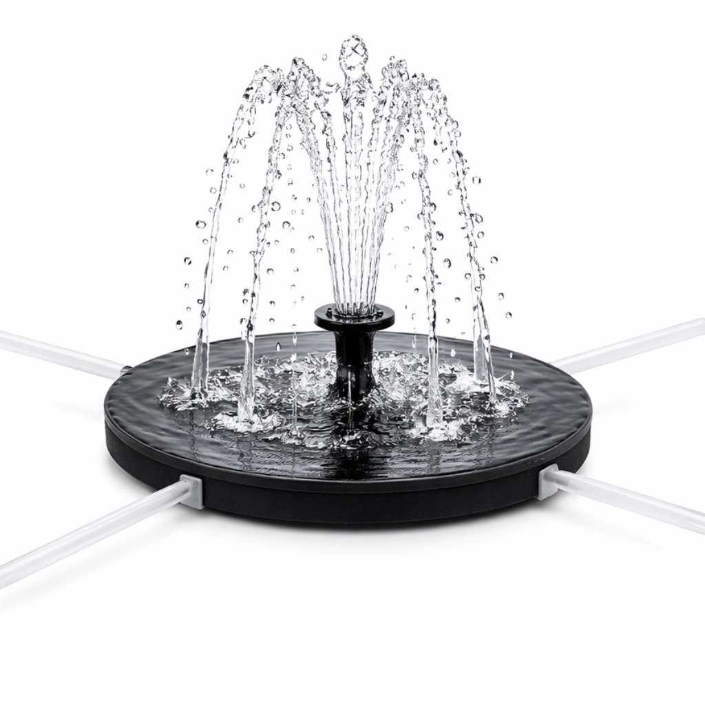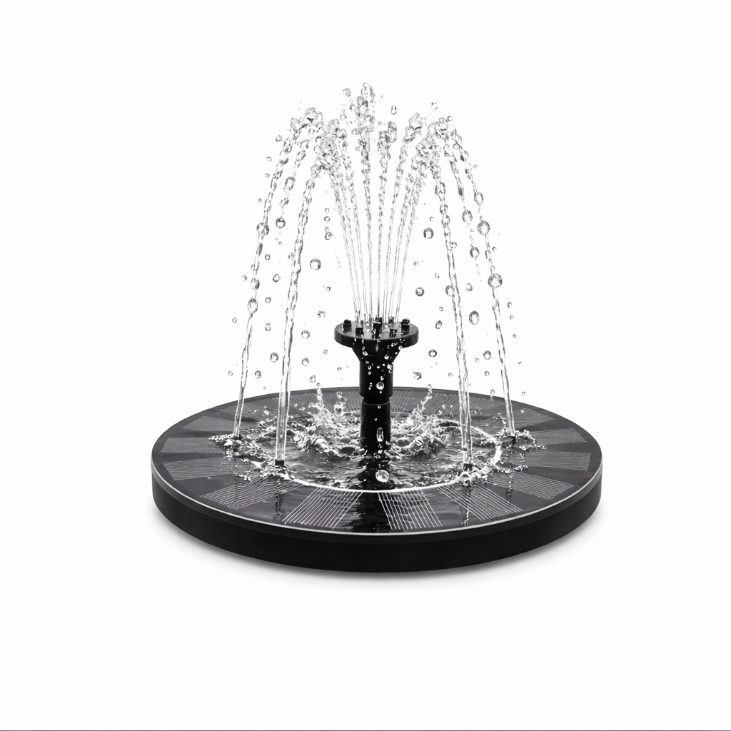 Dette solcelledrevne springvand starter automatisk i direkte sollys – læg det blot på vandoverfladen. Takket være den kompakte flydende skive med integrerede solpaneler får du øjeblikkelig vanddekoration uden installation og vedligeholdelse. Det forbedrer cirkulation og iltning af vandet, hvilket giver et renere og mere levende miljø for planter og fugle.