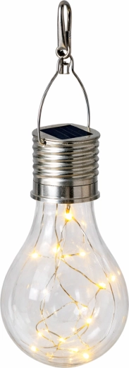 Skab behageligt aftenskær uden kabler og uden højere energiomkostninger. Denne dekorative solcellelampe i pæreform oplades i løbet af dagen og tænder automatisk ved skumring, hvilket giver rummet en hyggelig atmosfære. Takket være konstruktionen i robust polyresin og beskyttelsesklasse IP44 klarer den normale udendørsforhold.