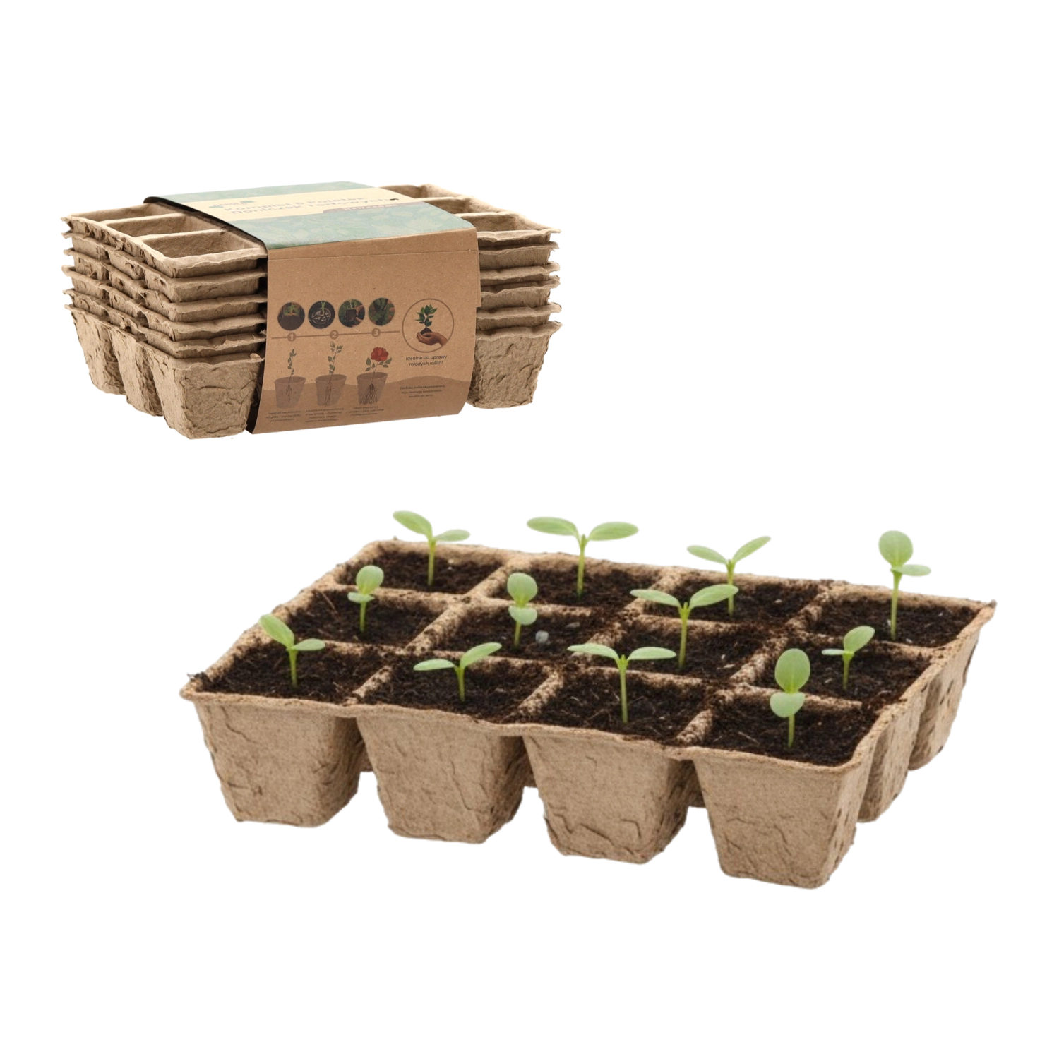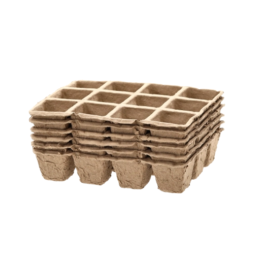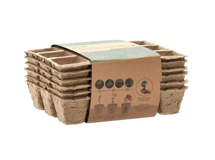 Start sæsonen bæredygtigt. Letvægtsbakker med 12 firkantede celler gør det nemt at så, rodfæste og omplante. Det naturlige materiale nedbrydes gradvist i jorden, så du kan flytte planterne direkte med bakken – rodsystemet forbliver intakt og uden chok.