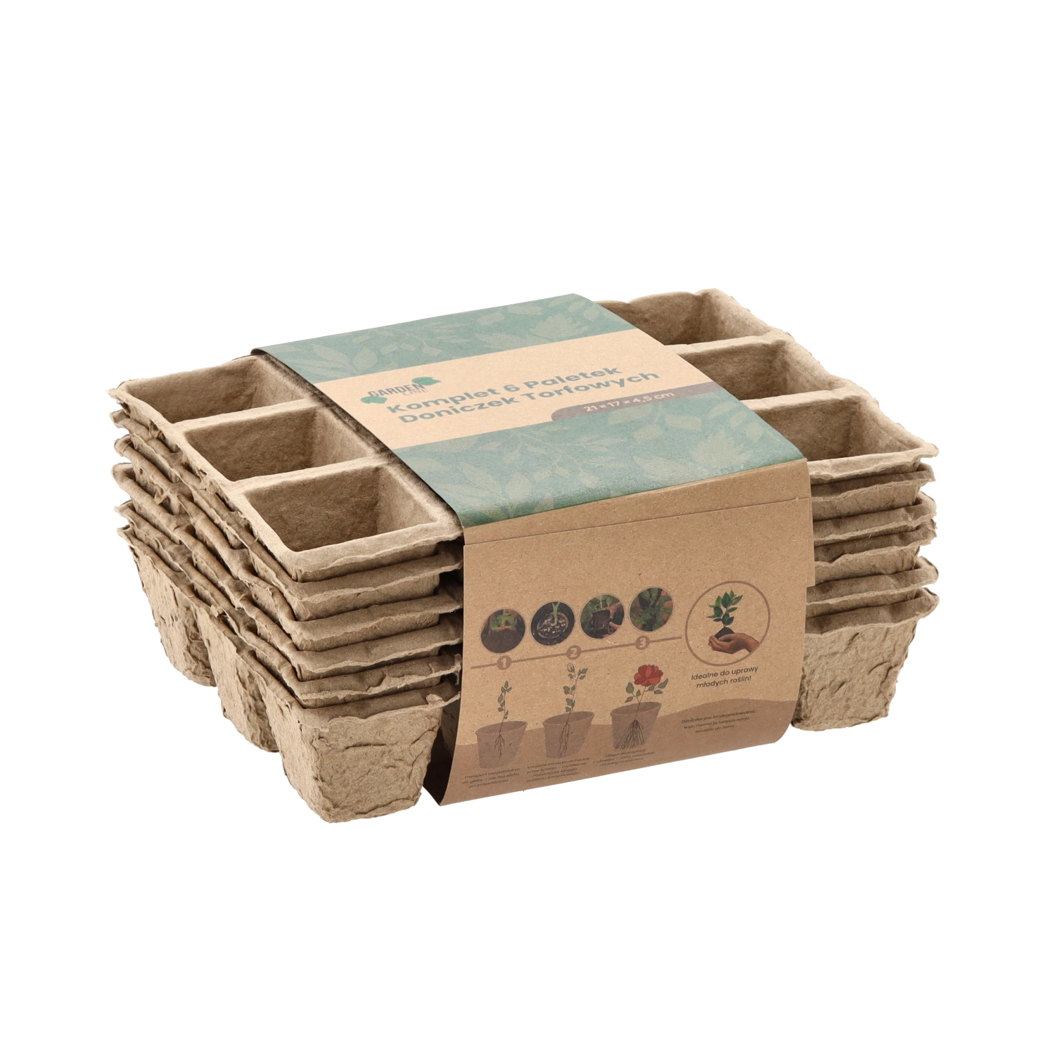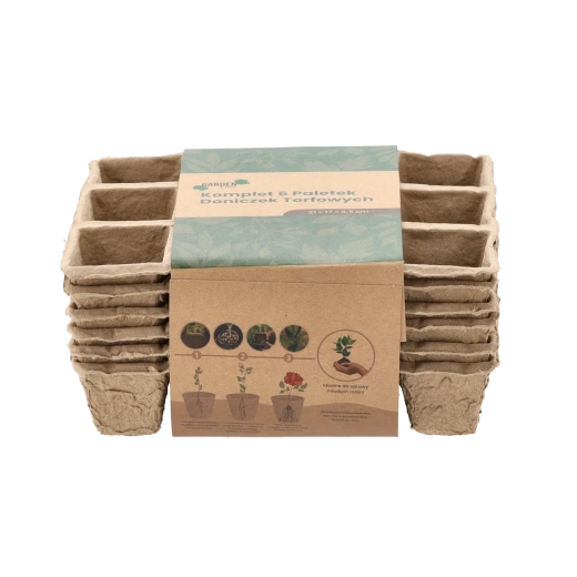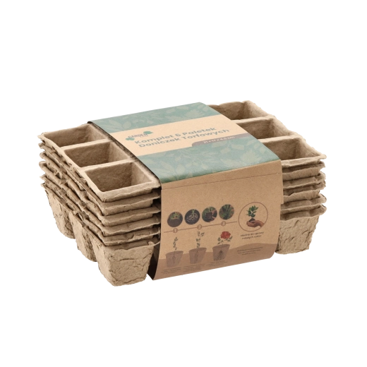 Et økologisk sæt med 6 bakker af presset papirmasse til forspiring af grøntsager, krydderurter og blomster. Bakkerne er 100% biologisk nedbrydelige, muliggør direkte udplantning i jorden uden stress for rødderne og har drænhuller for sund vækst.