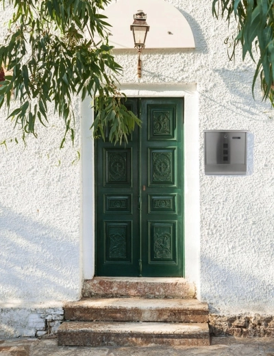 Frontlågen med cylinderlås beskytter din post. Et integreret navneskilt gør det nemt at mærke postkassen.