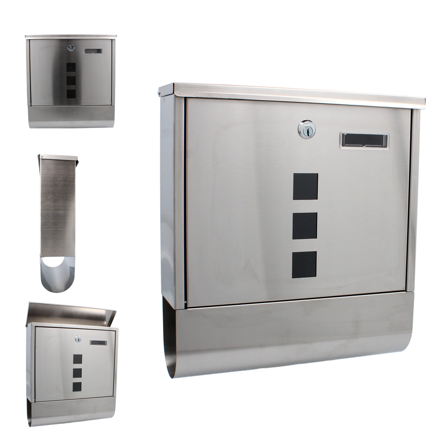 Tre vinduer gør det muligt hurtigt at tjekke indholdet uden at åbne. Den nederste holder holder aviser og flyers adskilt og tørre.