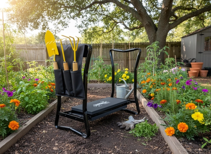 Med en hurtig vending skifter du mellem en blød knæler og et stabilt sæde. Ideel til plantning, lugning og pauser.