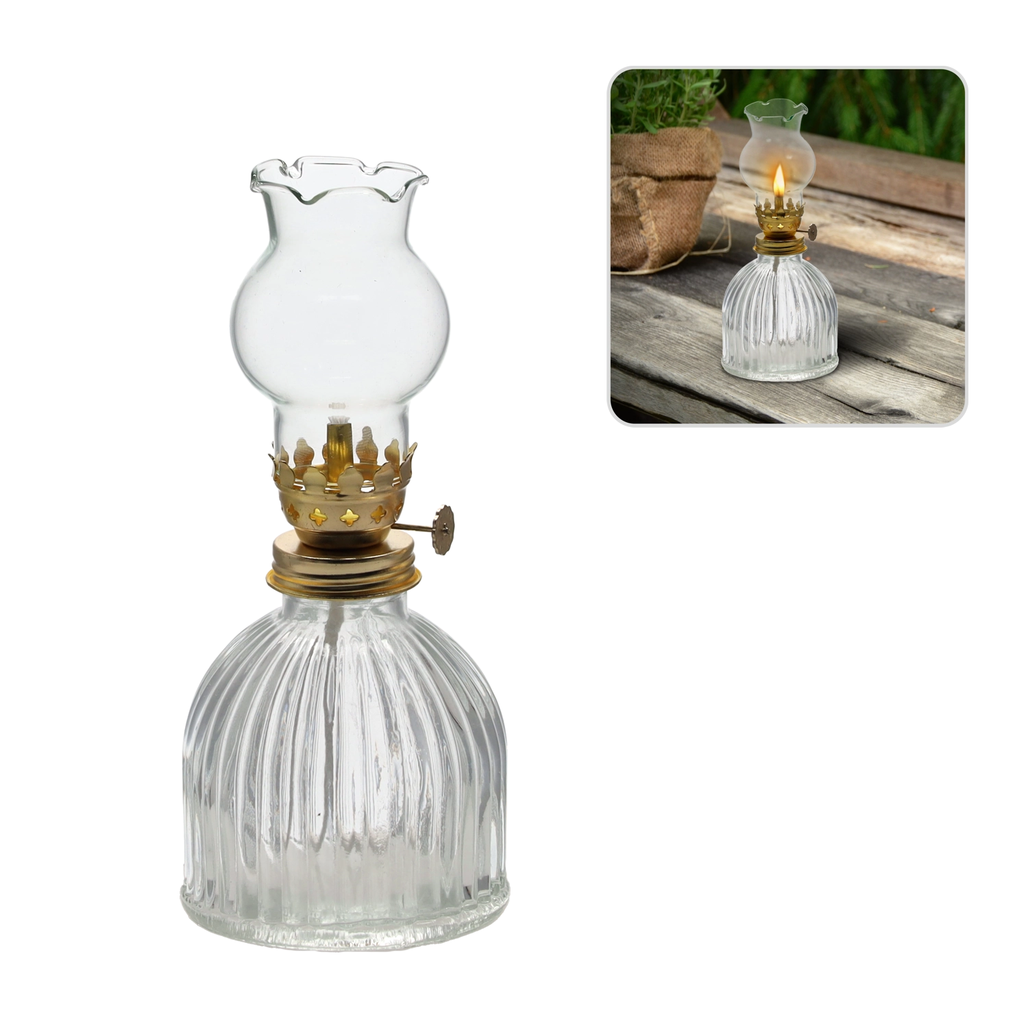 Traditionel glaspetroleumslygte med bomuldsvæge giver et behageligt, varmt lys både indendørs og i haven. Perfekt til en romantisk middag, sommeraftener eller som en stilfuld dekoration. Takket være de kvalitetsmaterialer og enkle betjening byder den på lang levetid og pålidelig brug.
