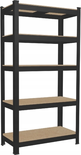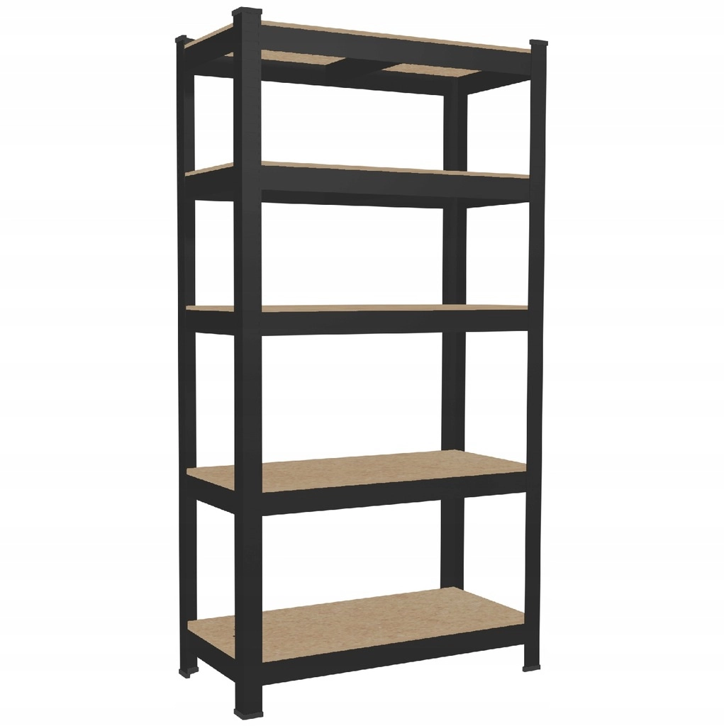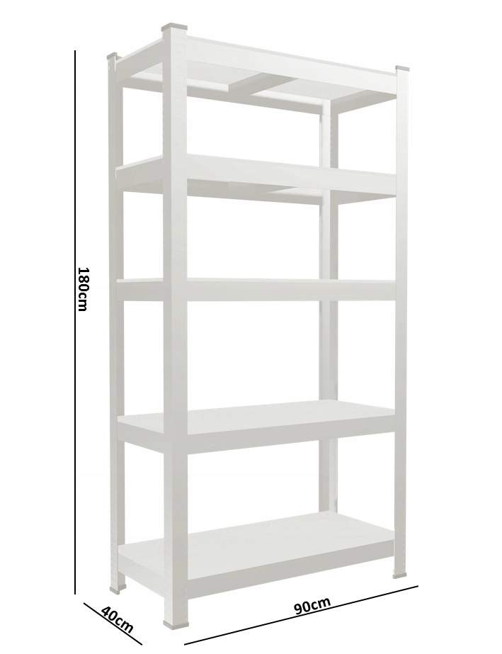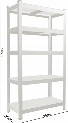 Fem rummelige hylder med praktiske mål 180 × 90 × 40 cm giver overskuelig og effektiv opbevaring i garage, værksted og hjem.