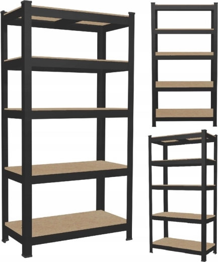 Praktisk løsning til både hjem og professionelle miljøer: 5 opbevaringsniveauer, sikker opbevaring med jævn belastningsfordeling og nem montering uden specialværktøj. Det sorte design passer til moderne interiører og arbejdsområder.